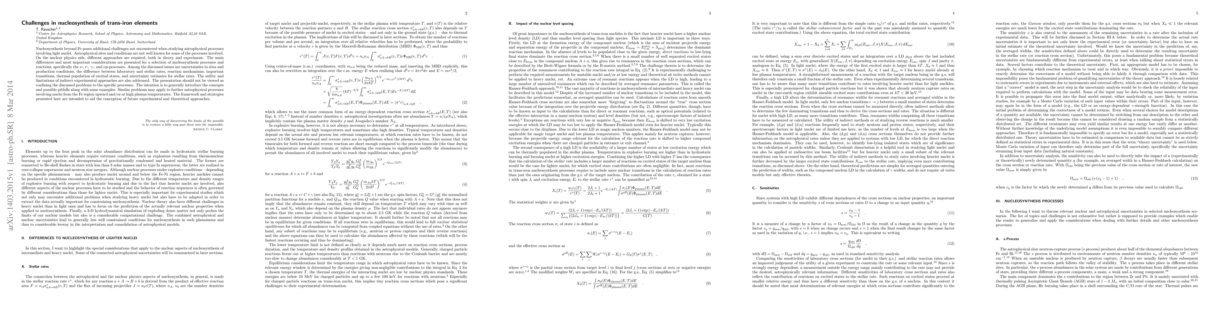Nucleosynthesis beyond Fe poses additional challenges not encountered when studying astrophysical processes involving light nuclei. Astrophysical sites and conditions are not well known for some of the processes involved. On the nuclear physics side, different approaches are required, both in theory and experiment. The main differences and most important considerations are presented for a selection of nucleosynthesis processes and reactions, specifically the $s$-, $r$-, $\gamma$-, and $\nu p$-processes. Among the discussed issues are uncertainties in sites and production conditions, the difference between laboratory and stellar rates, reaction mechanisms, important transitions, thermal population of excited states, and uncertainty estimates for stellar rates. The utility and limitations of indirect experimental approaches are also addressed. The presentation should not be viewed as confining the discussed problems to the specific processes. The intention is to generally introduce the concepts and possible pitfalls along with some examples. Similar problems may apply to further astrophysical processes involving nuclei from the Fe region upward and/or at high plasma temperatures. The framework and strategies presented here are intended to aid the conception of future experimental and theoretical approaches.