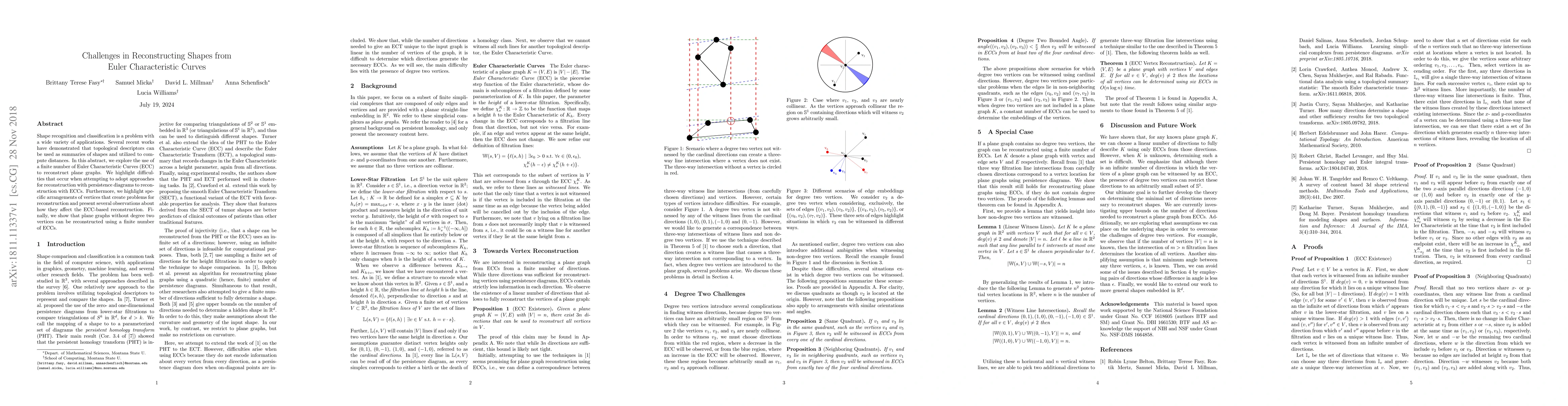 Shape recognition and classification is a problem with a wide variety of applications. Several recent works have demonstrated that topological descriptors can be used as summaries of shapes and utilized to compute distances. In this abstract, we explore the use of a finite number of Euler Characteristic Curves (ECC) to reconstruct plane graphs. We highlight difficulties that occur when attempting to adopt approaches for reconstruction with persistence diagrams to reconstruction with ECCs. Furthermore, we highlight specific arrangements of vertices that create problems for reconstruction and present several observations about how they affect the ECC-based reconstruction. Finally, we show that plane graphs without degree two vertices can be reconstructed using a finite number of ECCs.
