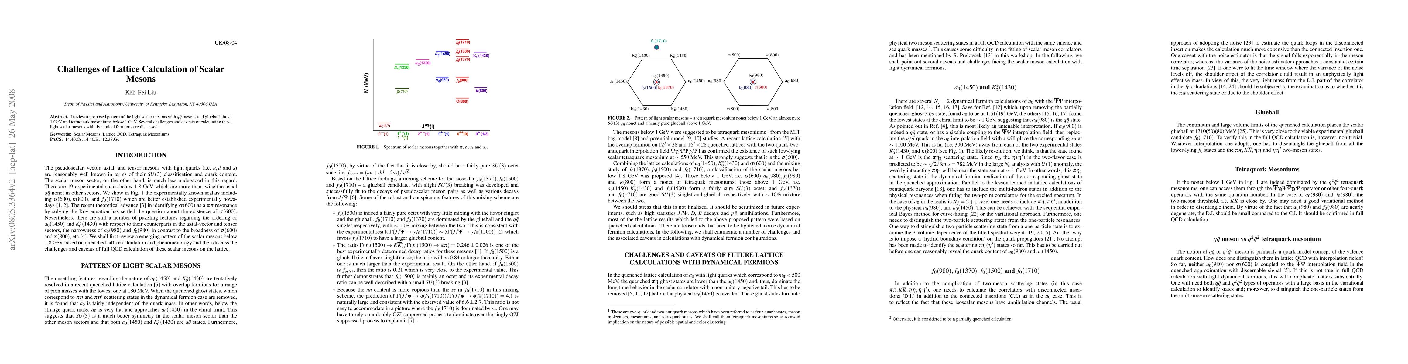 I review a proposed pattern of the light scalar mesons with q\bar{q} mesons and glueball above 1 GeV and tetraquark mesoniums below 1 GeV. Several challenges and caveats of calculating these light scalar mesons with dynamical fermions are discussed.