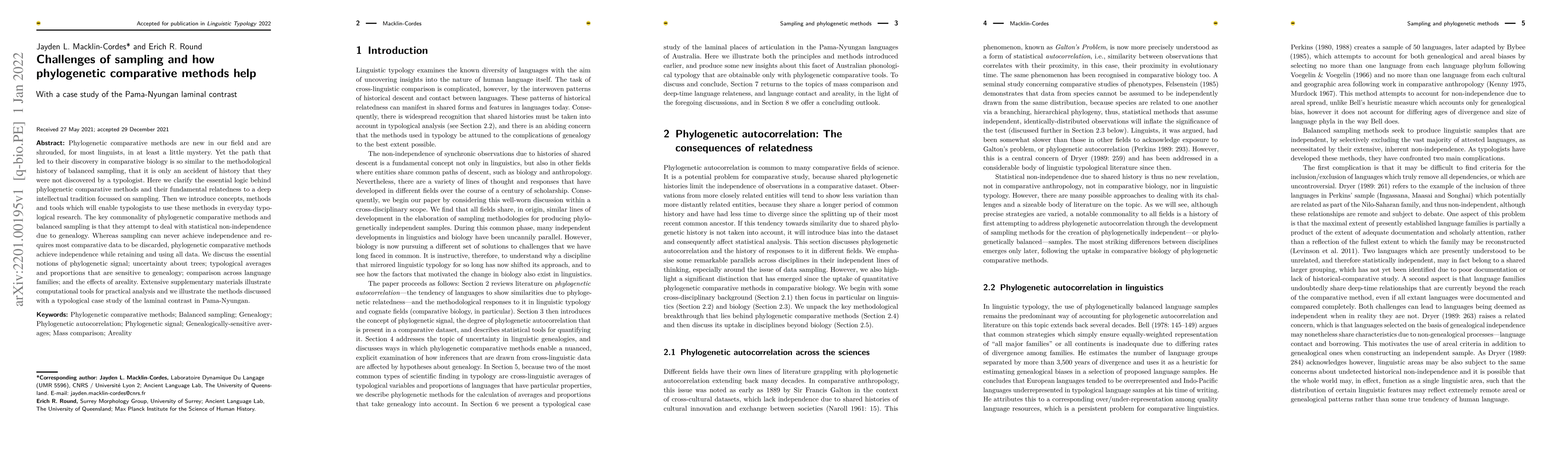 This paper elucidates the logic behind phylogenetic comparative methods and their connection to balanced sampling, demonstrating how these methods address statistical non-independence due to genealogy while retaining all data. It provides tools and concepts for typologists, illustrated by a case study on the laminal contrast in Pama-Nyungan languages.
