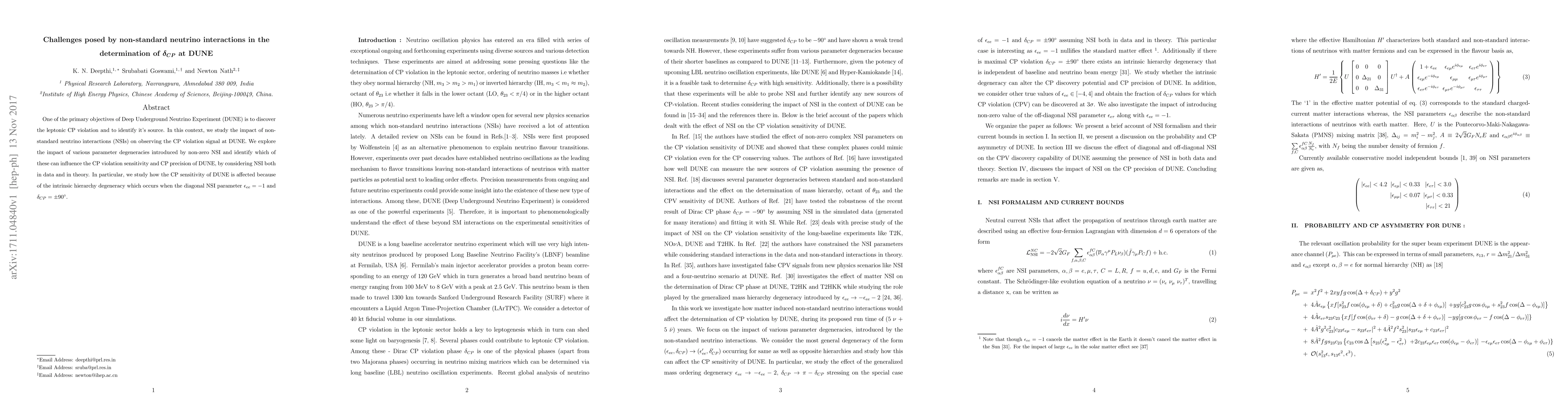 This paper investigates how non-standard neutrino interactions (NSIs) affect the detection of leptonic CP violation in the Deep Underground Neutrino Experiment (DUNE). It identifies parameter degeneracies introduced by NSI that could influence DUNE's CP violation sensitivity and precision, particularly focusing on the intrinsic hierarchy degeneracy when $\epsilon_{ee}=-1$ and $\delta_{CP}= \pm 90^{\circ}$.