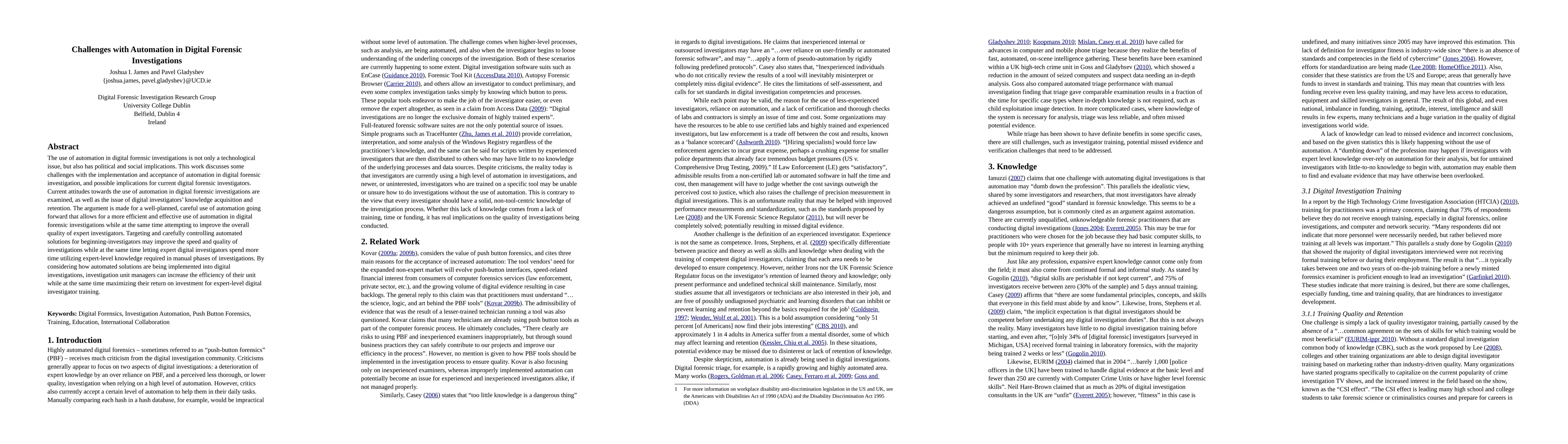 This paper explores the challenges of integrating automation into digital forensic investigations, emphasizing its political and social implications. It argues for a strategic approach to automation that enhances efficiency while preserving the expertise of seasoned investigators, suggesting targeted use of automation for novices to improve investigation speed and quality.