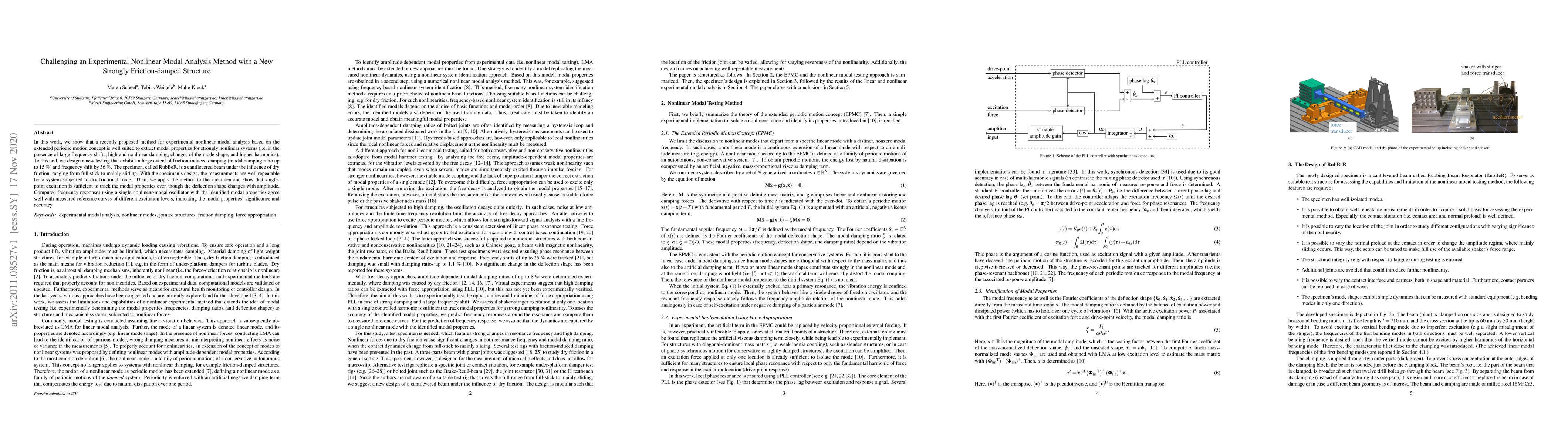 This paper evaluates a new experimental nonlinear modal analysis method using a specially designed friction-damped test rig, RubBeR, which demonstrates significant friction-induced damping and frequency shifts. The method successfully extracts modal properties despite large amplitude-dependent changes, validating its effectiveness for strongly nonlinear systems.