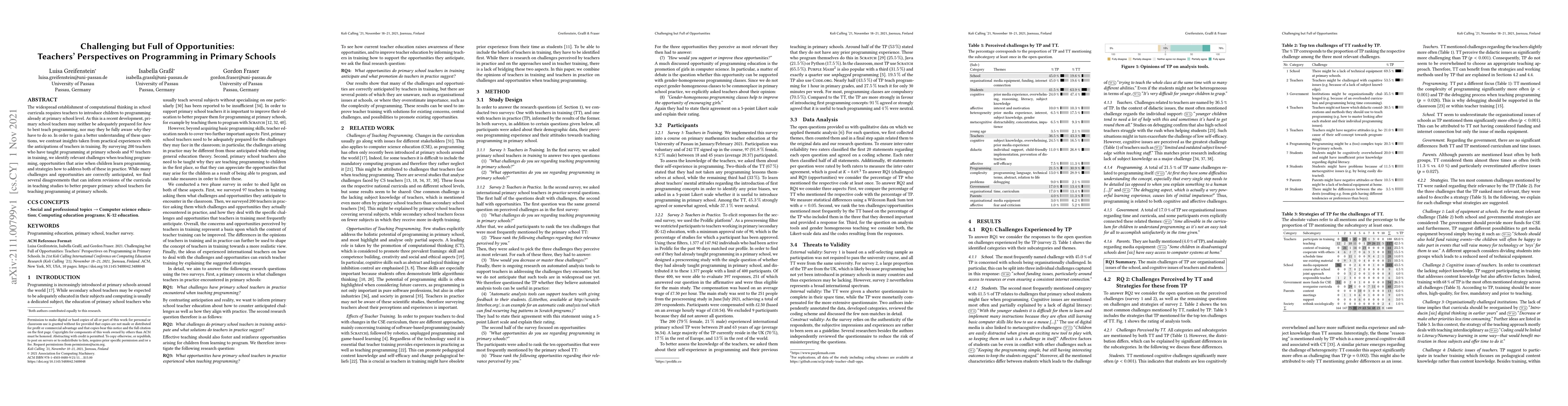 The widespread establishment of computational thinking in school curricula requires teachers to introduce children to programming already at primary school level. As this is a recent development, primary school teachers may neither be adequately prepared for how to best teach programming, nor may they be fully aware why they have to do so. In order to gain a better understanding of these questions, we contrast insights taken from practical experiences with the anticipations of teachers in training. By surveying 200 teachers who have taught programming at primary schools and 97 teachers in training, we identify relevant challenges when teaching programming, opportunities that arise when children learn programming, and strategies how to address both of these in practice. While many challenges and opportunities are correctly anticipated, we find several disagreements that can inform revisions of the curricula in teaching studies to better prepare primary school teachers for teaching programming at primary schools.