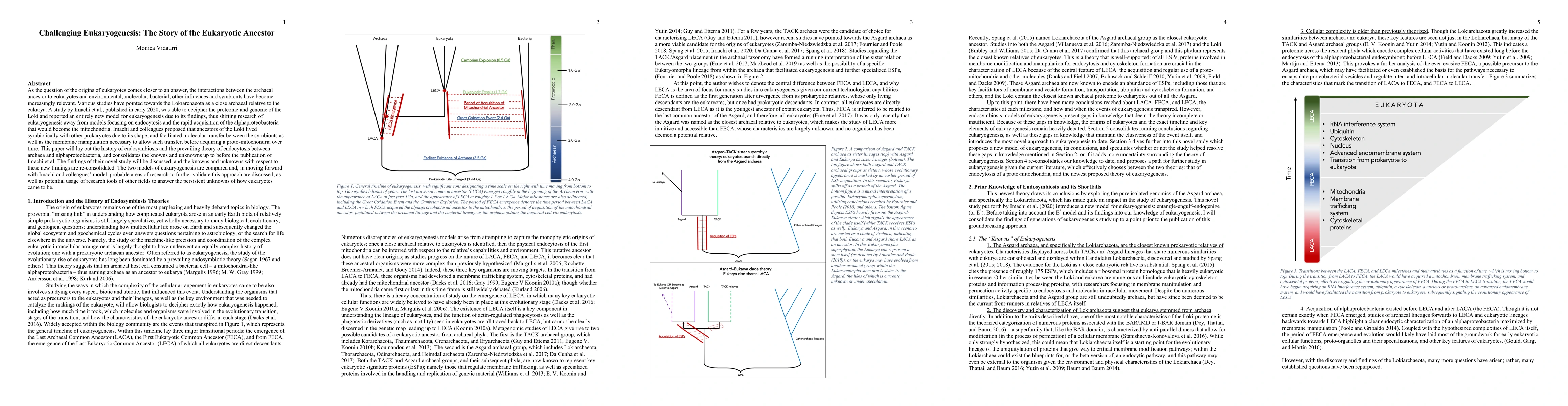 As the question of the origins of eukaryotes comes closer to an answer, the interactions between the archaeal ancestor to eukaryotes and environmental, molecular, bacterial, other influences and symbionts have become increasingly relevant. Various studies have pointed towards the Lokiarchaeota as a close archaeal relative to the eukarya. A study by Imachi et al., published in early 2020, was able to decipher the proteome and genome of the Loki and reported an entirely new model for eukaryogenesis due to its findings, thus shifting research of eukaryogenesis away from models focusing on endocytosis and the rapid acquisition of the alphaproteobacteria that would become the mitochondria. Imachi and colleagues proposed that ancestors of the Loki lived symbiotically with other prokaryotes due to its shape, and facilitated molecular transfer between the symbionts as well as the membrane manipulation necessary to allow such transfer, before acquiring a proto-mitochondria over time. This paper will lay out the history of endosymbiosis and the prevailing theory of endocytosis between archaea and alphaproteobacteria, and consolidates the knowns and unknowns up to before the publication of Imachi et al. The findings of their novel study will be discussed, and the knowns and unknowns with respect to these new findings are re-consolidated. The two models of eukaryogenesis are compared and, in moving forward with Imachi and colleagues model, probable areas of research to further validate this approach are discussed, as well as potential usage of research tools of other fields to answer the persistent unknowns of how eukaryotes came to be.