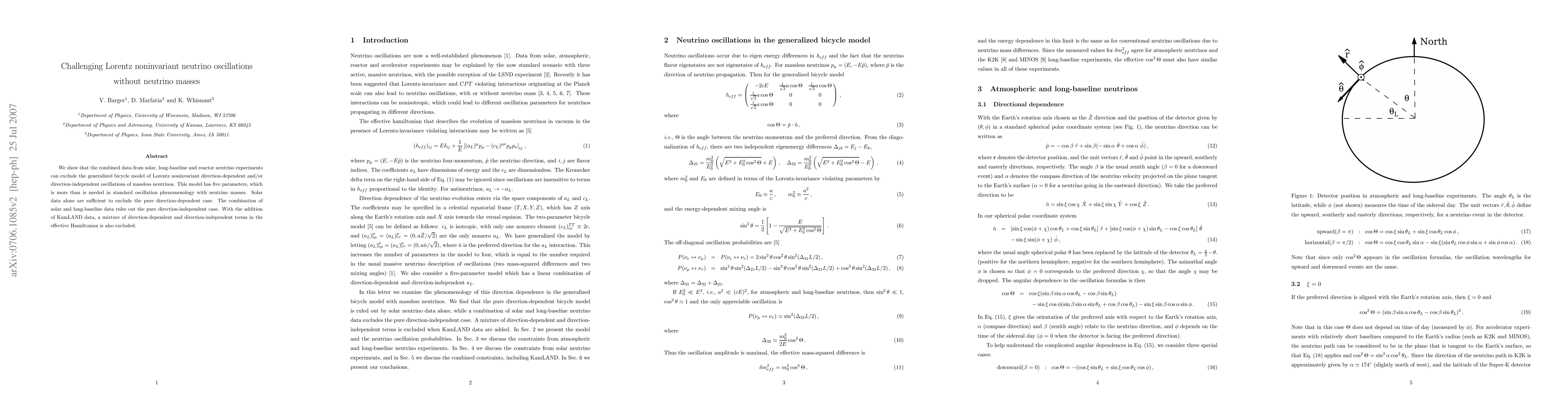 The research used a combination of solar, long-baseline, and reactor neutrino data to constrain the parameters of the generalized five-parameter bicycle model with Lorentz invariance violation.