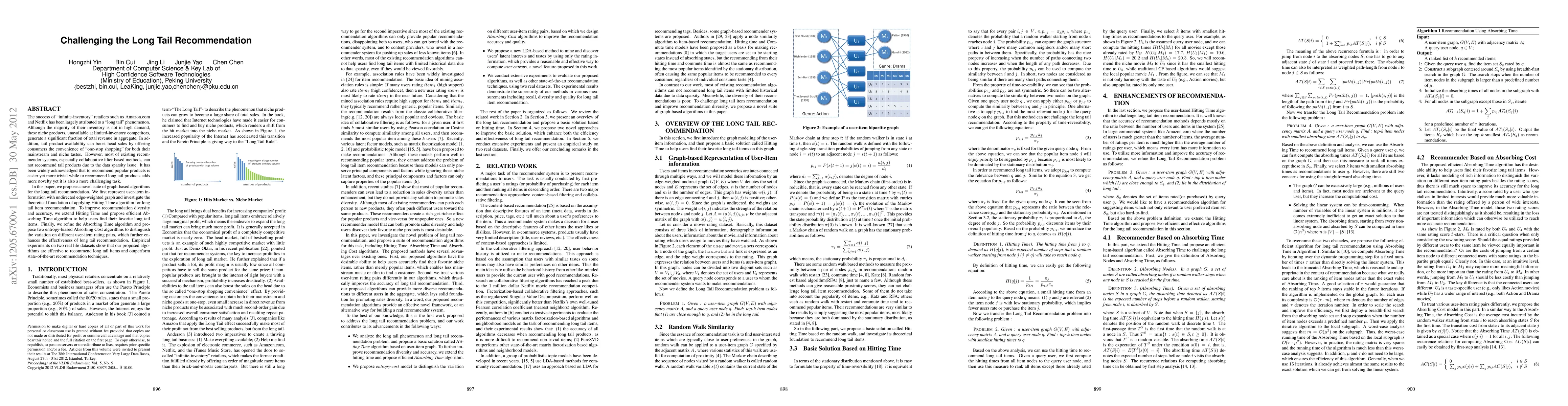 This paper proposes novel graph-based algorithms to enhance long tail product recommendation in recommender systems, addressing the challenge of data sparsity. It introduces the Hitting Time algorithm and extends it with the Absorbing Time algorithm and entropy-biased Absorbing Cost algorithms to improve recommendation diversity and accuracy, demonstrating superior performance over existing methods in empirical experiments.