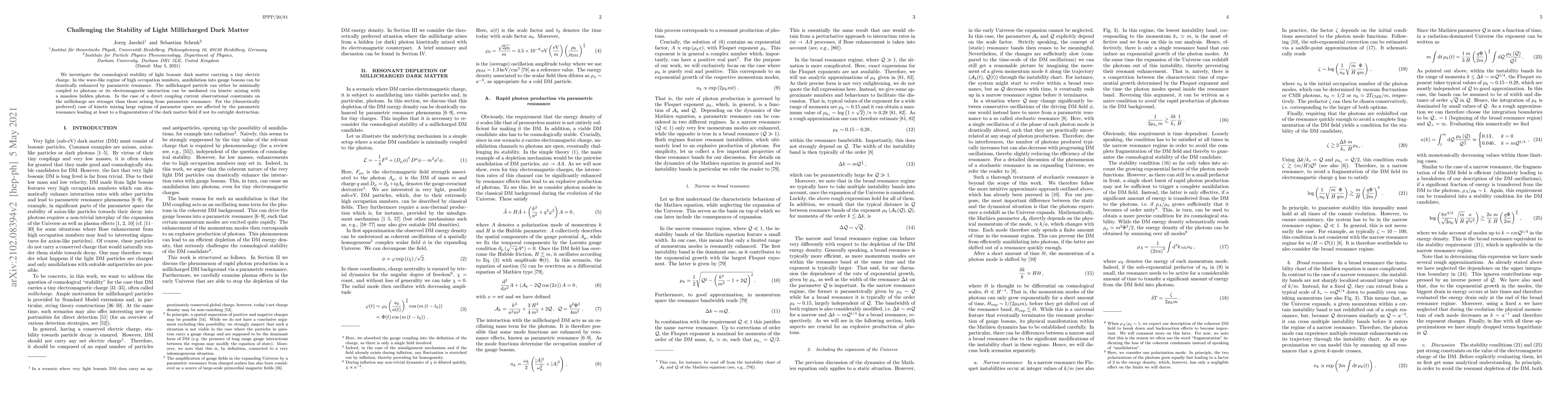 We investigate the cosmological stability of light bosonic dark matter carrying a tiny electric charge. In the wave-like regime of high occupation numbers, annihilation into gauge bosons can be drastically enhanced by parametric resonance. The millicharged particle can either be minimally coupled to photons or its electromagnetic interaction can be mediated via kinetic mixing with a massless hidden photon. In the case of a direct coupling current observational constraints on the millicharge are stronger than those arising from parametric resonance. For the (theoretically preferred) case of kinetic mixing large regions of parameter space are affected by the parametric resonance leading at least to a fragmentation of the dark matter field if not its outright destruction.