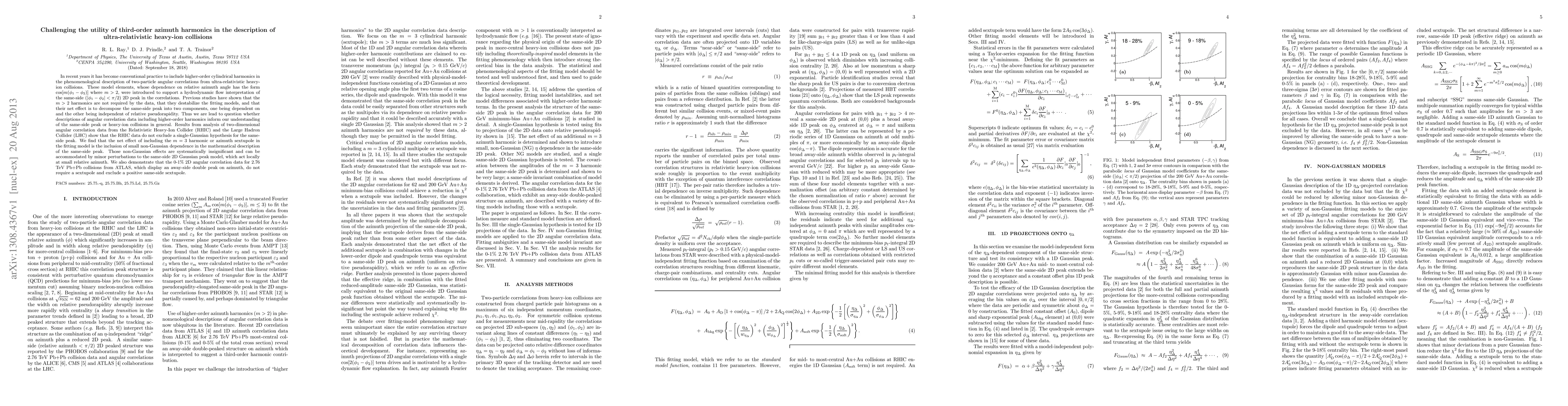 In recent years it has become conventional practice to include higher-order cylindrical harmonics in the phenomenological description of two-particle angular correlations from ultra-relativistic heavy-ion collisions. These model elements, whose dependence on relative azimuth angle has the form $\cos[m(\phi_1-\phi_2)]$ where $m > 2$, were introduced to support a hydrodynamic flow interpretation of the same-side ($|\phi_1-\phi_2| < \pi/2$) 2D peak in the correlations. Previous studies have shown that the $m > 2$ harmonics are not required by the data, that they destabilize the fitting models, and that their net effect is to decompose the same-side peak into two components, one being dependent on and the other being independent of relative pseudorapidity. Thus we are lead to question whether descriptions of angular correlation data including higher-order harmonics inform our understanding of the same-side peak or heavy-ion collisions in general. Results from analysis of two-dimensional angular correlation data from the Relativistic Heavy-Ion Collider (RHIC) and the Large Hadron Collider (LHC) show that the RHIC data do not exclude a single-Gaussian hypothesis for the same-side peak. We find that the net effect of including the $m = 3$ harmonic or azimuth sextupole in the fitting model is the inclusion of small non-Gaussian dependence in the mathematical description of the same-side peak. Those non-Gaussian effects are systematically insignificant and can be accommodated by minor perturbations to the same-side 2D Gaussian peak model, which act locally at small relative azimuth. We also demonstrate that the 0-1% 2D angular correlation data for 2.76 TeV Pb+Pb collisions from ATLAS, which display an away-side double peak on azimuth, do not require a sextupole and exclude a positive same-side sextupole.