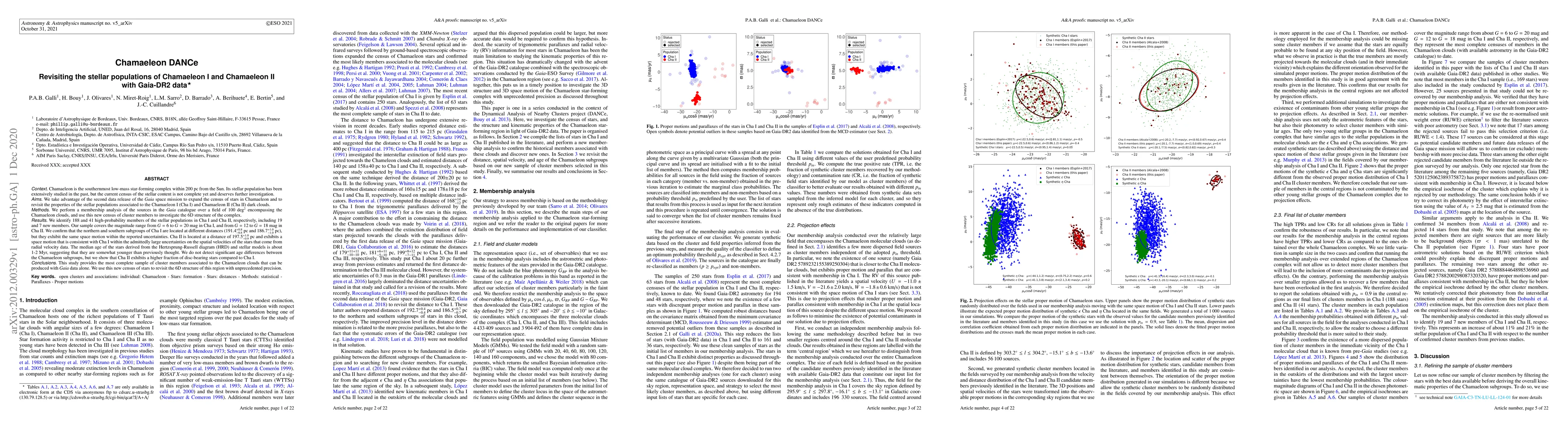 Context: Chamaeleon is the southernmost low-mass star-forming complex within 200 pc from the Sun. Its stellar population has been extensively studied in the past, but the current census of the stellar content is not complete yet and deserves further investigation. Aims: We take advantage of the second data release of the \textit{Gaia} space mission to expand the census of stars in Chamaeleon and to revisit the properties of the stellar populations associated to the Chamaeleon I (Cha I) and Chamaeleon II (Cha II) dark clouds. Methods: We perform a membership analysis of the sources in the \textit{Gaia} catalogue over a field of 100 deg$^{2}$ encompassing the Chamaeleon clouds, and use this new census of cluster members to investigate the 6D structure of the complex. Results: We identify 188 and 41 high-probability members of the stellar populations in Cha I and Cha II, respectively, including 19 and 7 new members. Our sample covers the magnitude range from $G=6$ to $G=20$ mag in Cha I, and from $G=12$ to $G=18$ mag in Cha II. We confirm that the northern and southern subgroups of Cha I are located at different distances ($191.4^{+0.8}_{-0.8}$ pc and $186.7^{+1.0}_{-1.0}$ pc), but they exhibit the same space motion within the reported uncertainties. Cha II is located at a distance of $197.5^{+1.0}_{-0.9}$ pc and exhibits a space motion that is consistent with Cha I within the admittedly large uncertainties on the spatial velocities of the stars that come from radial velocity data. The median age of the stars derived from the Hertzsprung-Russell diagram (HRD) and stellar models is about 1-2 Myr, suggesting that they are somewhat younger than previously thought. We do not detect significant age differences between the Chamaeleon subgroups, but we show that Cha II exhibits a higher fraction of disc-bearing stars compared to Cha I.