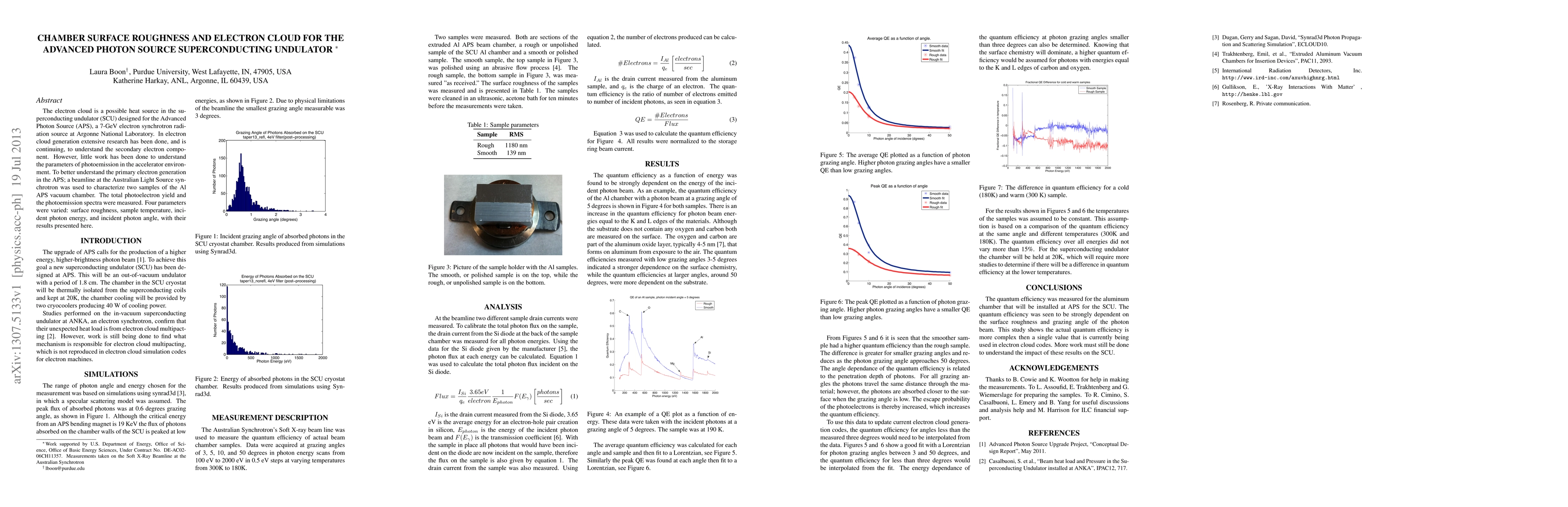This research characterizes two samples of the Al vacuum chamber for the Advanced Photon Source's superconducting undulator, measuring total photoelectron yield and emission spectra. Varying surface roughness, temperature, photon energy, and angle, it aims to understand primary electron generation, crucial for addressing potential heat sources like the electron cloud.
