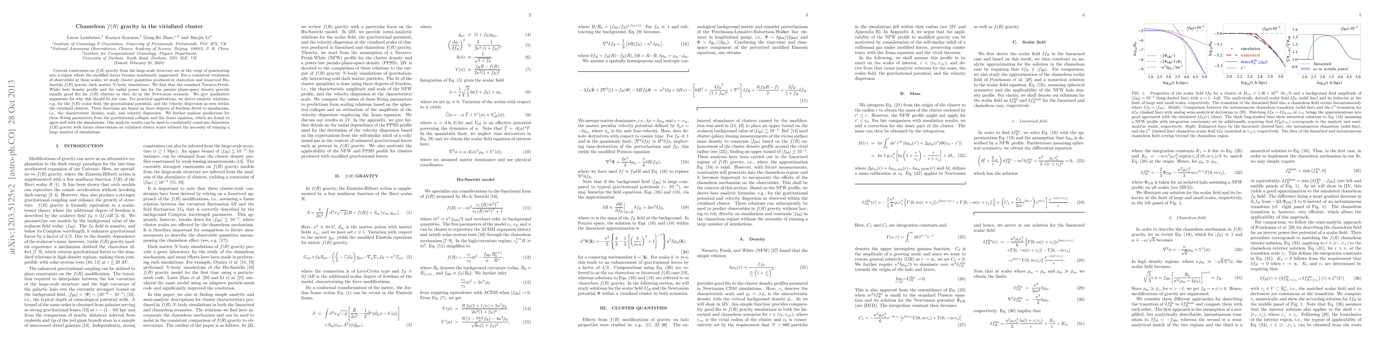 This paper explores the effects of chameleon f(R) gravity on virialized clusters, finding that standard density profiles still apply. It derives analytic relations for the f(R) scalar field and gravitational potential, based on simulation-fitted parameters, which can constrain the theory with future observational data.