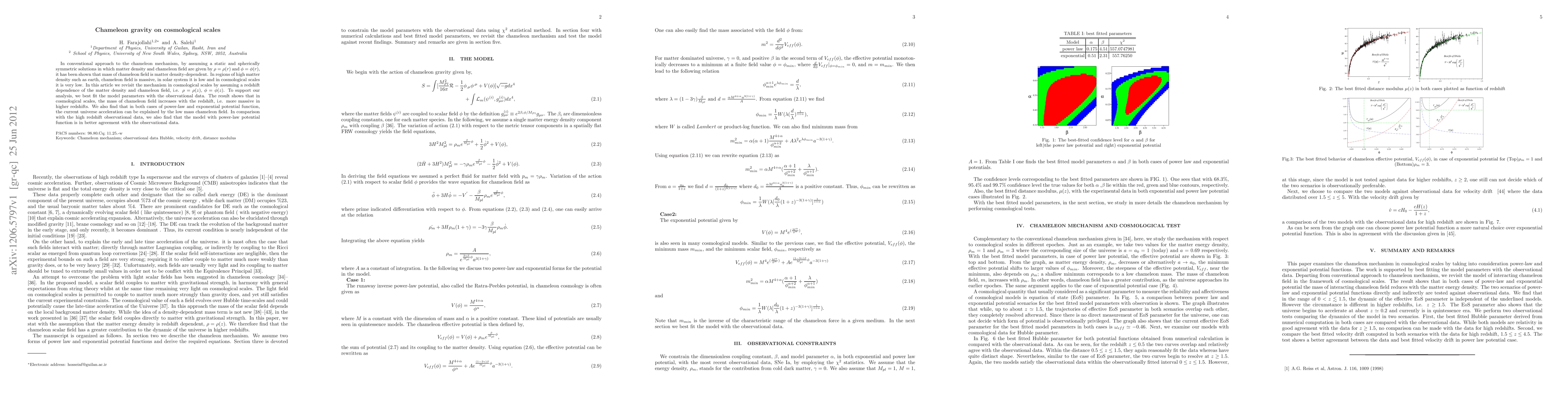 This paper revisits the chameleon gravity mechanism on cosmological scales, showing that the chameleon field's mass increases with redshift, becoming more massive in higher redshifts. The study finds that the current universe's acceleration can be explained by a low mass chameleon field, with the power-law potential function model better fitting high redshift observational data.