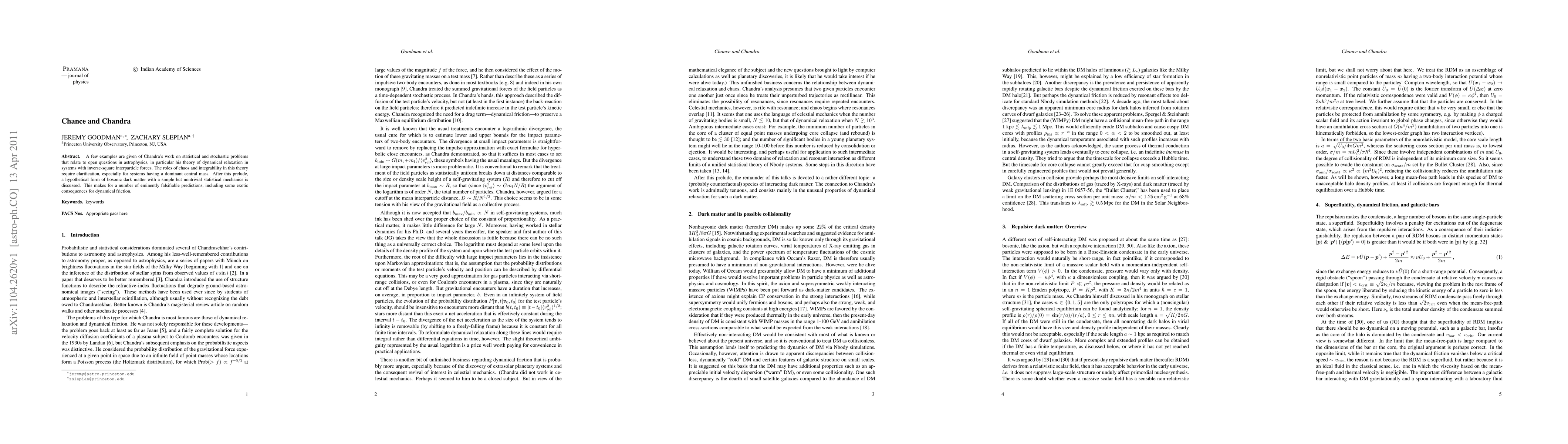 A few examples are given of Chandra's work on statistical and stochastic problems that relate to open questions in astrophysics, in particular his theory of dynamical relaxation in systems with inverse-square interparticle forces. The roles of chaos and integrability in this theory require clarification, especially for systems having a dominant central mass. After this prelude, a hypothetical form of repulsive bosonic dark matter is discussed. The repulsion leads to nontrivial thermodynamic behavior, including superfluidity, and would tend to suppress dynamical friction, greatly reducing the drag exerted on rotating galactic bars. However, this form of dark matter can probably be ruled out, at least for parameters that allow halos to reach thermal equilibria within a Hubble time. One combination of the particle mass and interparticle repulsion determines the minimum core radius of dark halos. Bounds on dark-matter collisionality inferred from the Bullet Cluster constrain a second combination. It is possible to satisfy both constraints only for parameters that predict unacceptable rotation curves outside the halo core.