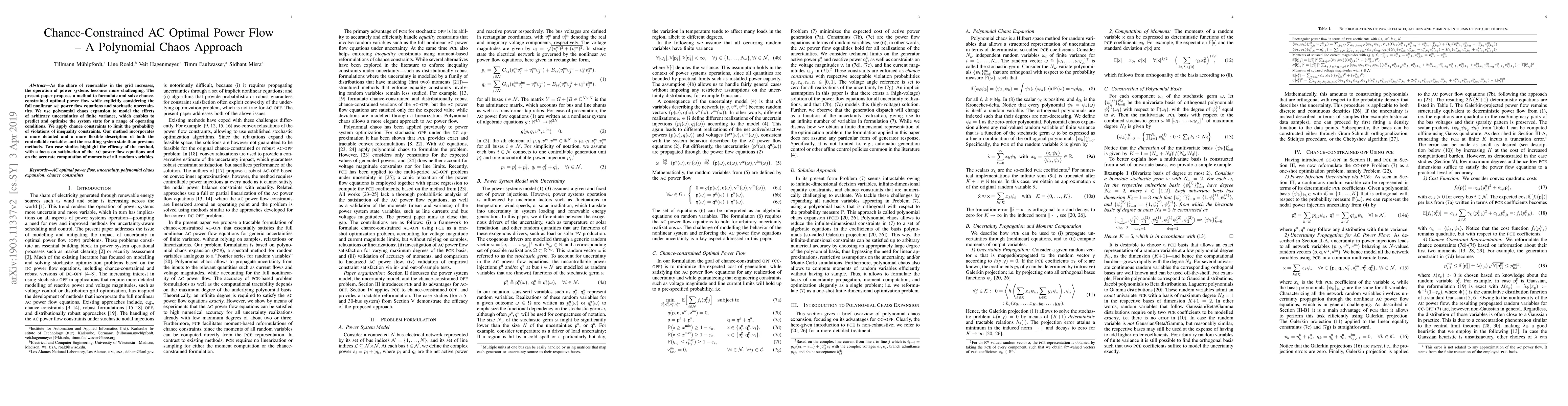 This paper proposes a polynomial chaos expansion method for solving chance-constrained AC optimal power flow, addressing the complexities introduced by increasing renewable energy sources. The approach accurately models stochastic uncertainties and ensures constraint satisfaction with high probability, demonstrating improved flexibility and accuracy over previous methods.
