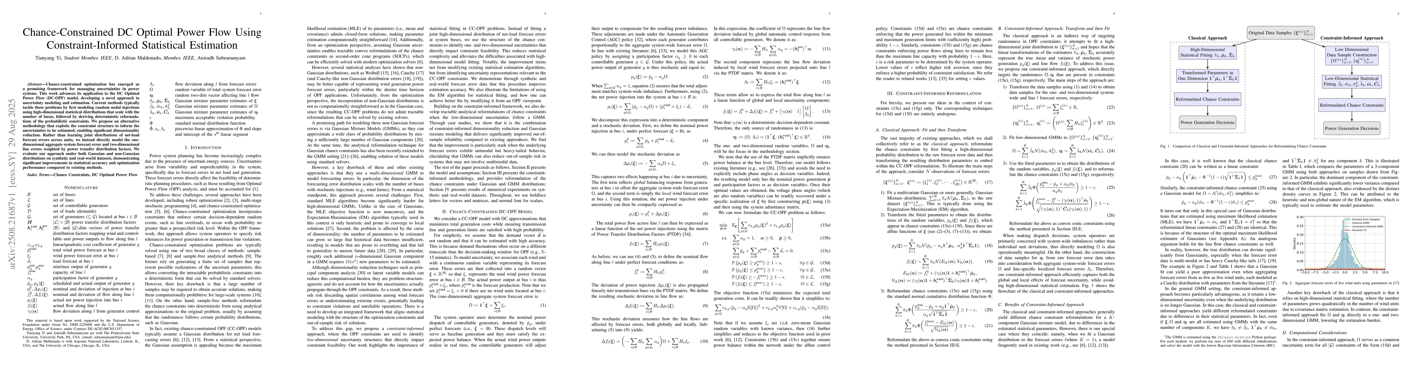 Chance-constrained optimization has emerged as a promising framework for managing uncertainties in power systems. This work advances its application to the DC Optimal Power Flow (DC-OPF) model, developing a novel approach to uncertainty modeling and estimation. Current methods typically tackle these problems by first modeling random nodal injections using high-dimensional statistical distributions that scale with the number of buses, followed by deriving deterministic reformulations of the probabilistic constraints. We propose an alternative methodology that exploits the constraint structure to inform the uncertainties to be estimated, enabling significant dimensionality reduction. Rather than learning joint distributions of net-load forecast errors across units, we instead directly model the one-dimensional aggregate system forecast error and two-dimensional line errors weighted by power transfer distribution factors. We evaluate our approach under both Gaussian and non-Gaussian distributions on synthetic and real-world datasets, demonstrating significant improvements in statistical accuracy and optimization performance compared to existing methods.