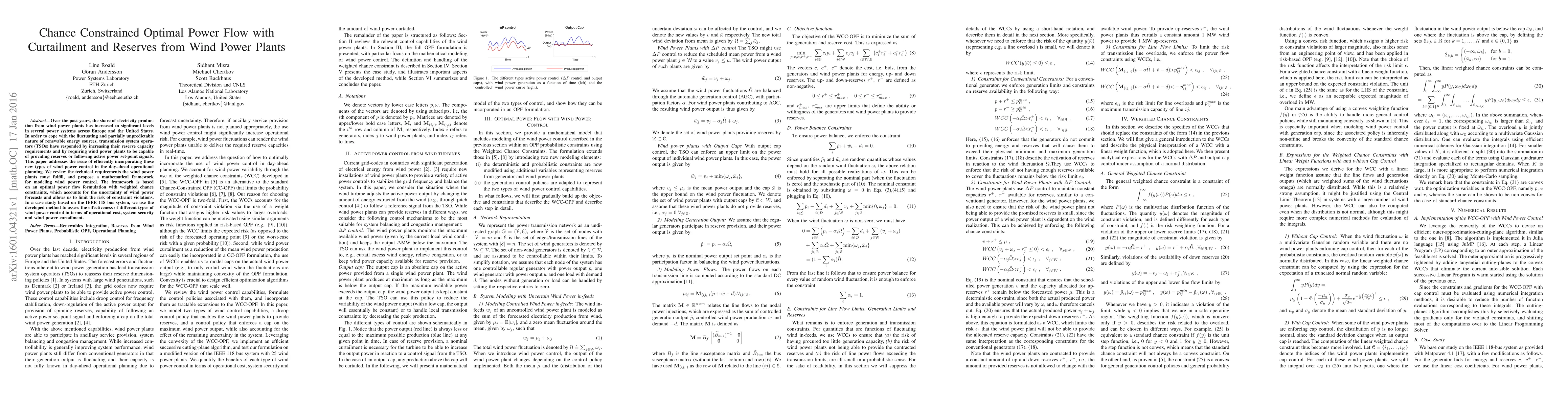 This paper proposes a mathematical framework for optimal power flow planning that incorporates wind power control with curtailment and reserves, using a chance-constrained approach to manage wind power forecast uncertainty. The method is tested on the IEEE 118 bus system, evaluating the impact of different wind power control strategies on operational costs, system security, and curtailment levels.