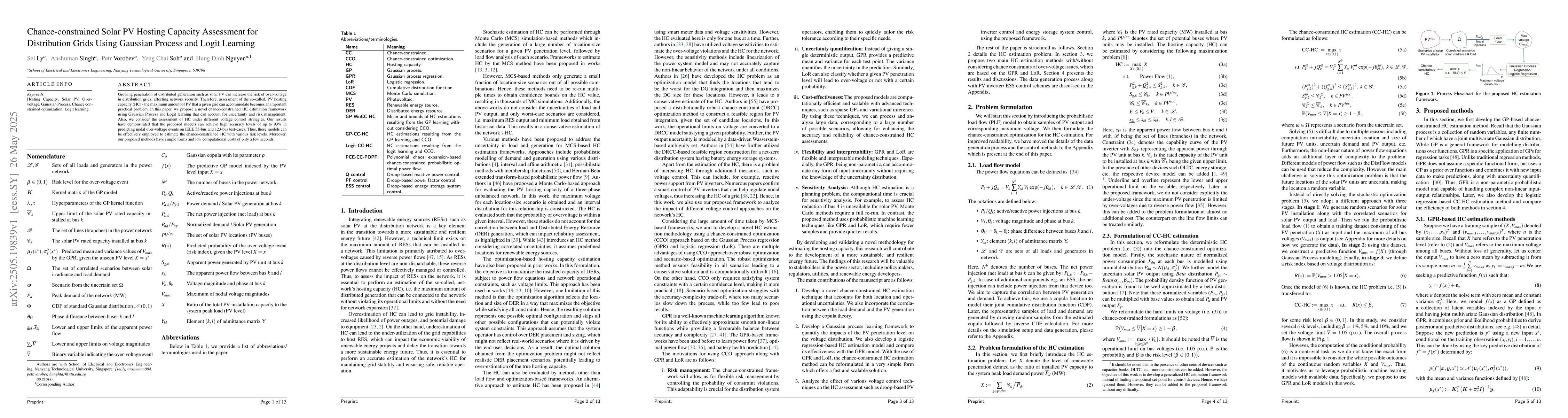 The paper proposes a chance-constrained PV hosting capacity (HC) estimation framework using Gaussian Process and Logit learning to address over-voltage risks in distribution grids due to high solar PV penetration.