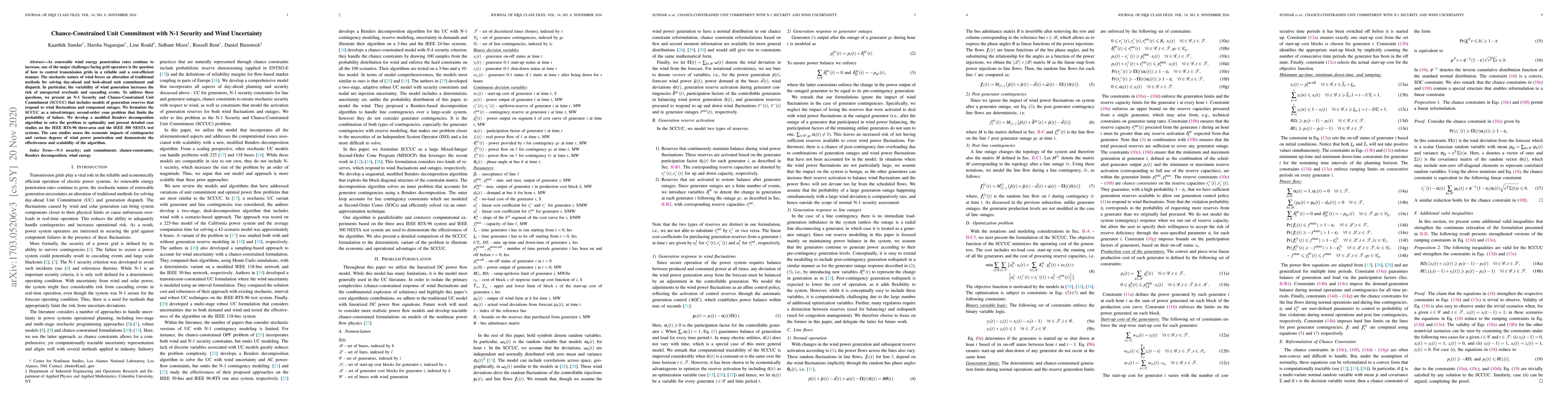 This paper proposes an N-1 Security and Chance-Constrained Unit Commitment (SCCUC) model to manage the integration of increasing wind energy while ensuring grid reliability and cost-efficiency. The model addresses wind variability and component failures through generation reserves, formulated as a mixed-integer, second-order cone problem, and solved using a modified Benders decomposition algorithm.