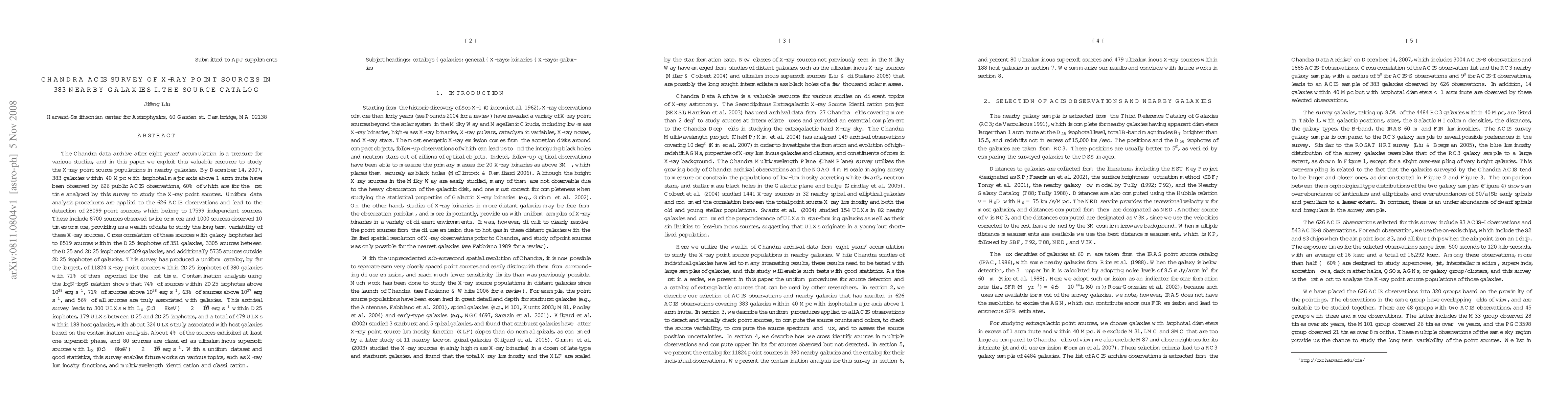 The Chandra data archive after eight years' accumulation is a treasure for various studies, and in this paper we exploit this valuable resource to study the X-ray point source populations in nearby galaxies. By December 14, 2007, 383 galaxies within 40 Mpc with isophotal major axis above 1 arcminute have been observed by 626 public ACIS observations, 60% of which are for the first time analyzed by this survey to study the X-ray point sources. Uniform data analysis procedures are applied to the 626 ACIS observations and lead to the detection of 28099 point sources, which belong to 17599 independent sources. These include 8700 sources observed twice or more and 1000 sources observed 10 times or more, providing us a wealth of data to study the long term variability of these X-ray sources. Cross correlation of these sources with galaxy isophotes led to 8519 sources within the D25 isophotes of 351 galaxies, 3305 sources between the D25 and 2D25 isophotes of 309 galaxies, and additionally 5735 sources outside 2D25 isophotes of galaxies. This survey has produced a uniform catalog, by far the largest, of 11824 X-ray point sources within 2D25 isophotes of 380 galaxies with 71% of them reported for the first time. With a uniform dataset and good statistics, this survey enables future works on various topics, such as X-ray luminosity functions, and multiwavelength identification and classification.
