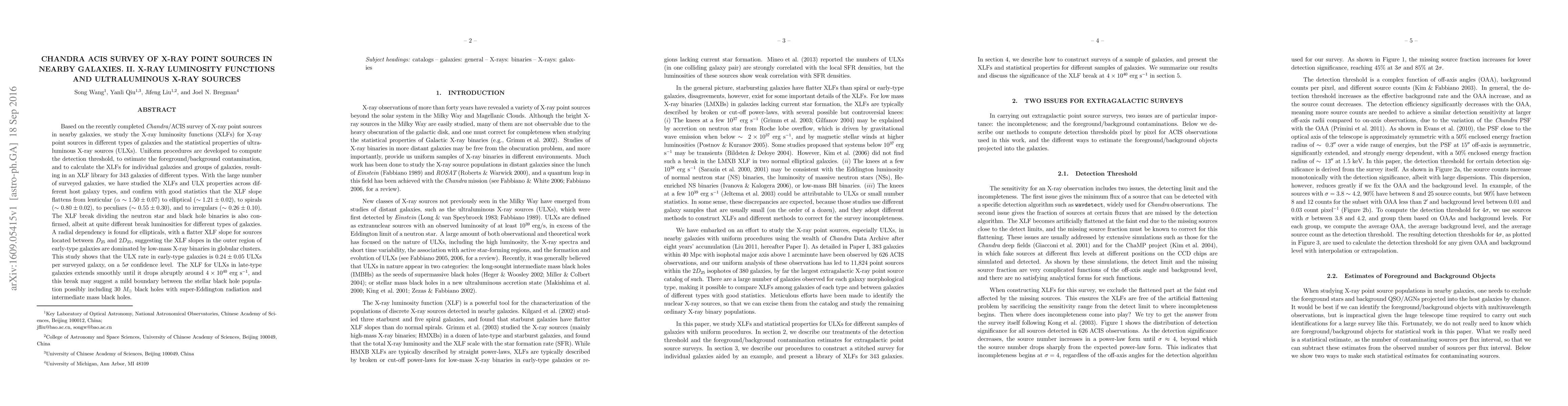 This study uses the Chandra ACIS survey to analyze X-ray luminosity functions (XLFs) across various galaxy types and investigates ultraluminous X-ray sources (ULXs). It finds a flattening XLF slope from lenticular to irregular galaxies and confirms a radial dependency in elliptical galaxies, suggesting dominance by low-mass X-ray binaries in globular clusters. The ULX rate in early-type galaxies is estimated at $0.24\pm0.05$ per galaxy, with a break in the XLF for ULXs in late-type galaxies suggesting a boundary between stellar black holes and intermediate mass black holes.
