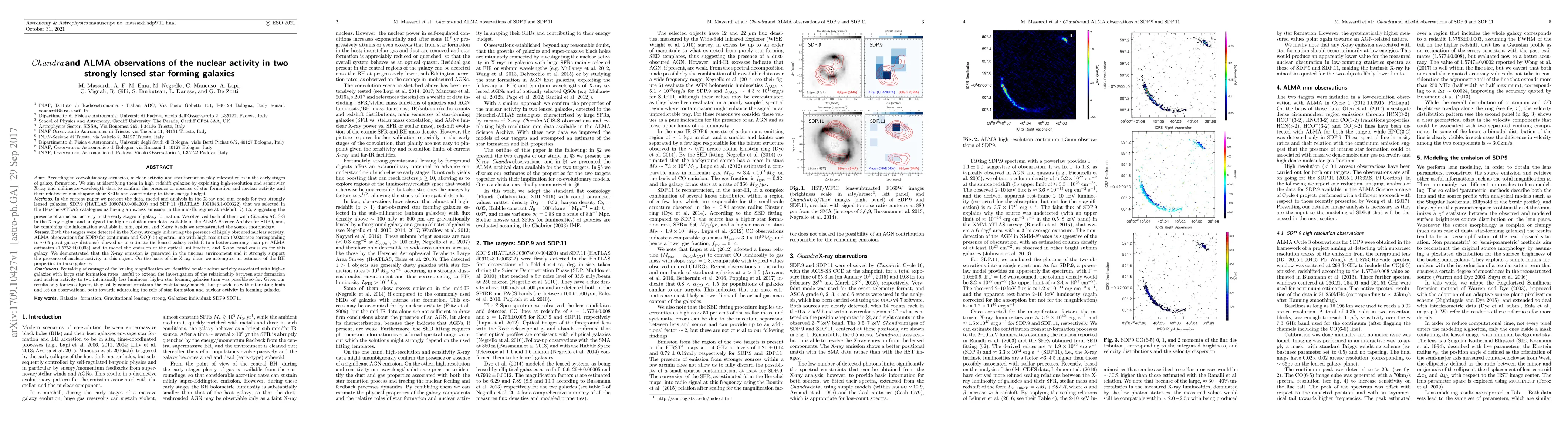 This paper uses Chandra and ALMA observations to identify nuclear activity in two high-redshift, lensed star-forming galaxies, SDP.9 and SDP.11, revealing highly obscured nuclear activity and suggesting a relationship between star formation and nuclear activity in early galaxy formation.