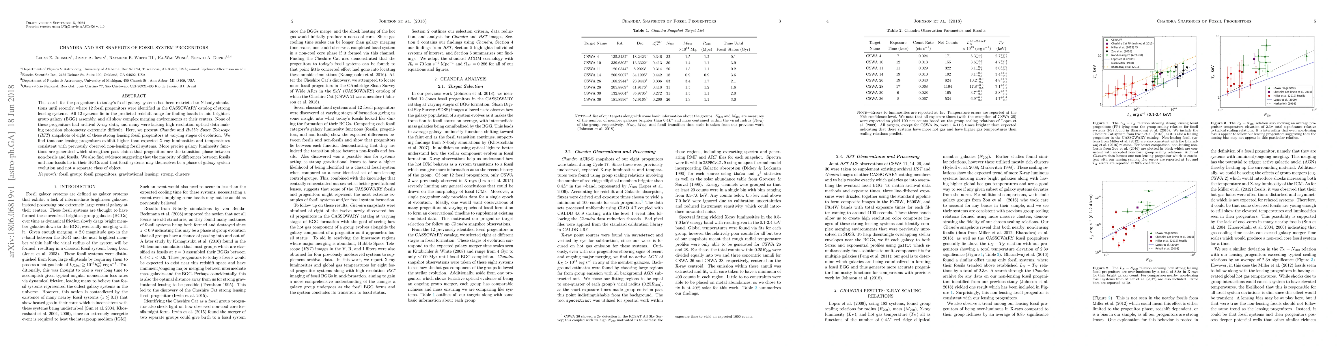 The search for the progenitors to today's fossil galaxy systems has been restricted to N-body simulations until recently, where 12 fossil progenitors were identified in the CASSOWARY catalog of strong lensing systems. All 12 systems lie in the predicted redshift range for finding fossils in mid brightest group galaxy (BGG) assembly, and all show complex merging environments at their centers. None of these progenitors had archival X-ray data, and many were lacking high resolution optical data making precision photometry extremely difficult. Here, we present Chandra and Hubble Space Telescope (HST) snapshots of eight of these strong lensing fossil progenitors at varying stages of evolution. We find that our lensing progenitors exhibit higher than expected X-ray luminosities and temperatures consistent with previously observed non-lensing fossil systems. More precise galaxy luminosity functions are generated which strengthen past claims that progenitors are the transition phase between non-fossils and fossils. We also find evidence suggesting that the majority of differences between fossils and non-fossils lie in their BGGs and that fossil systems may themselves be a phase of galaxy system evolution and not a separate class of object.