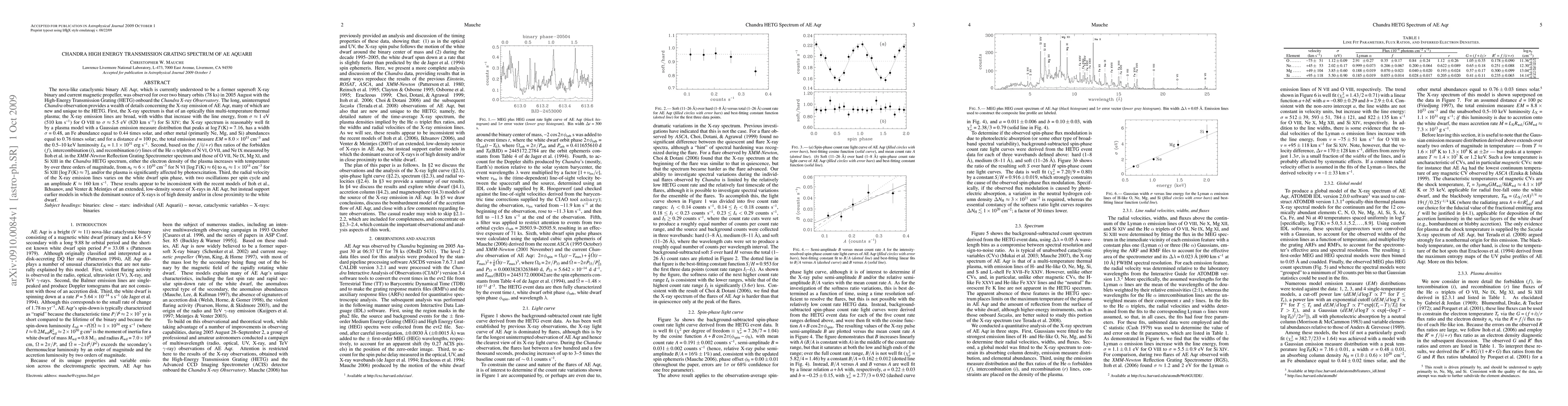 The Chandra X-ray Observatory's High-Energy Transmission Grating spectrum of AE Aqr reveals a multi-temperature thermal plasma with broad X-ray emission lines, indicating high density or proximity to the white dwarf. The radial velocity variations suggest two oscillations per spin cycle with an amplitude of 160 km/s, challenging recent models of low-density X-ray sources.