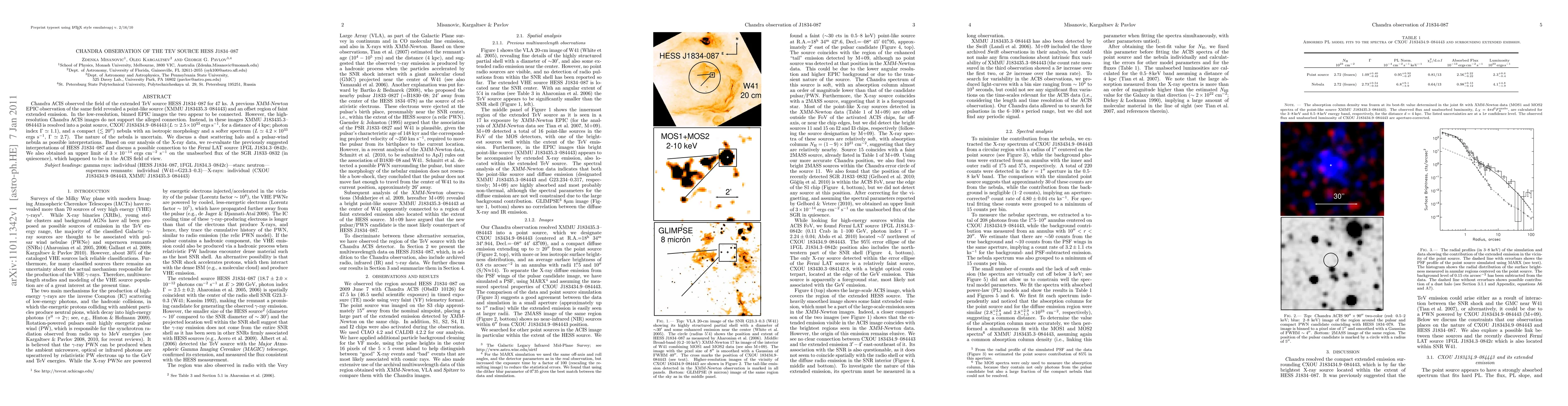Chandra ACIS observations reveal that the TeV source HESS J1834-087 consists of a point source and a compact nebula, challenging previous interpretations of their connection. The nature of the nebula remains uncertain, with potential explanations including a dust scattering halo or a pulsar-wind nebula.