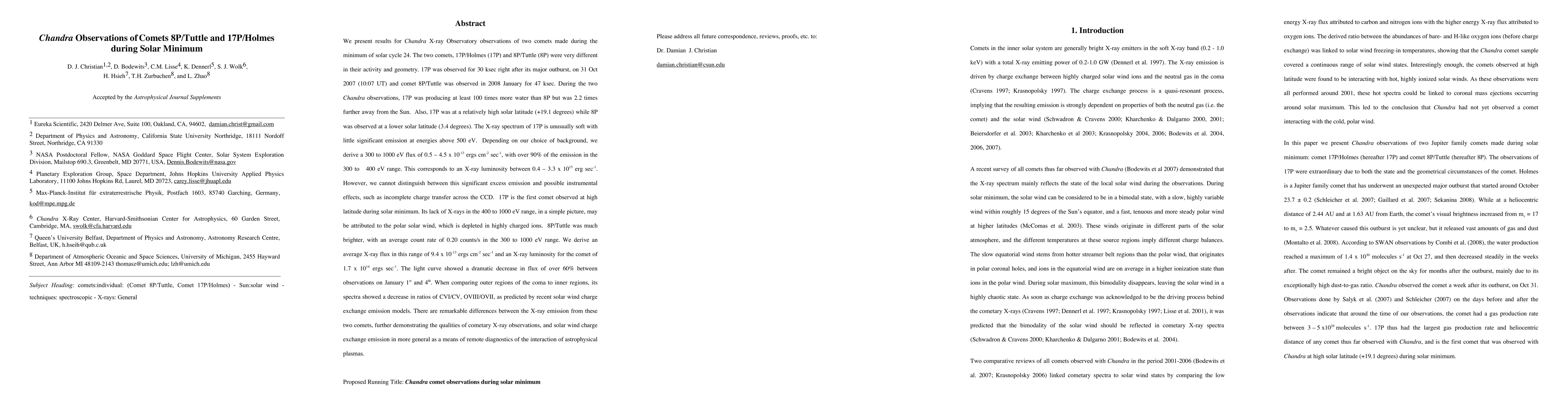This study uses Chandra observations to compare X-ray emissions from comets 17P/Holmes and 8P/Tuttle, noting 17P produced significantly more water but was farther from the Sun. 17P's X-ray spectrum is unusually soft, suggesting depletion of high-energy X-rays due to the polar solar wind, while 8P/Tuttle exhibited a brighter X-ray emission.