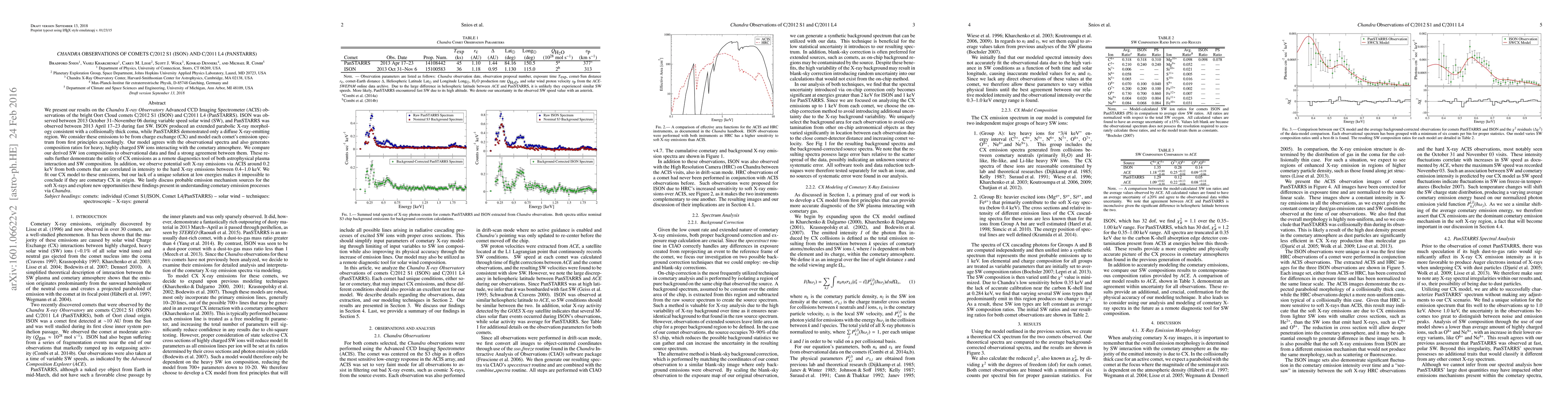 This study uses Chandra X-ray Observatory data to analyze the X-ray emissions from comets C/2012 S1 (ISON) and C/2011 L4 (PanSTARRS), finding ISON's X-ray morphology indicative of a collisionally thick coma and PanSTARRS showing diffuse emissions. The research models these emissions as charge exchange processes, revealing strong agreement between the derived solar wind ion compositions and observational data.