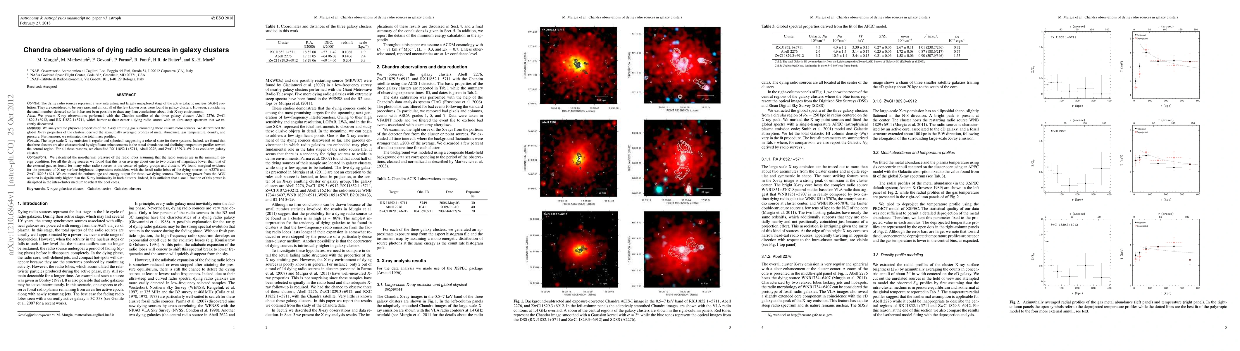 The study uses Chandra satellite data to analyze X-ray properties of galaxy clusters with dying radio sources, finding that they exhibit a relaxed state with enhanced metal abundance and declining temperature profiles.