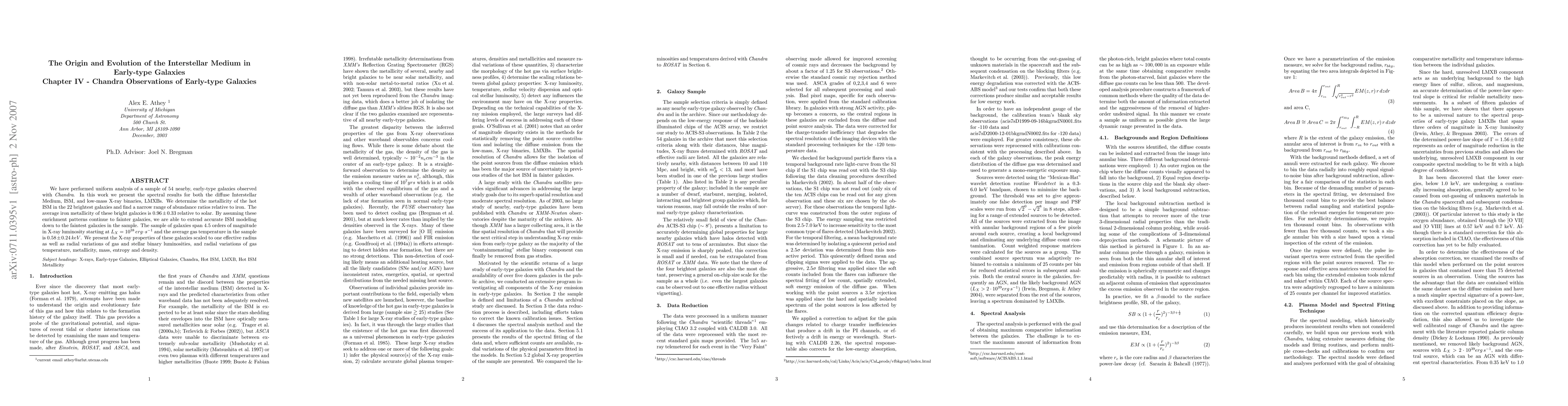 We have performed uniform analysis of a sample of 54 nearby, early-type galaxies observed with \emph{Chandra}. In this work we present the spectral results for both the diffuse Interstellar Medium, ISM, and low-mass X-ray binaries, LMXBs. We determine the metallicity of the hot ISM in the 22 brightest galaxies and find a narrow range of abundance ratios relative to iron. The average iron metallicity of these bright galaxies is $0.96\pm0.33$ relative to solar. By assuming these enrichment patterns continue to fainter galaxies, we are able to extend accurate ISM modeling down to the faintest galaxies in the sample. The sample of galaxies span 4.5 orders of magnitude in X-ray luminosity starting at $L_X=10^{38} erg \cdot s^{-1}$ and the average gas temperature in the sample is $0.58\pm0.24 keV$. We present the X-ray properties of these galaxies scaled to one effective radius as well as radial variations of gas and stellar binary luminosities, and radial variations of gas temperature, metallicity, mass, entropy and density.