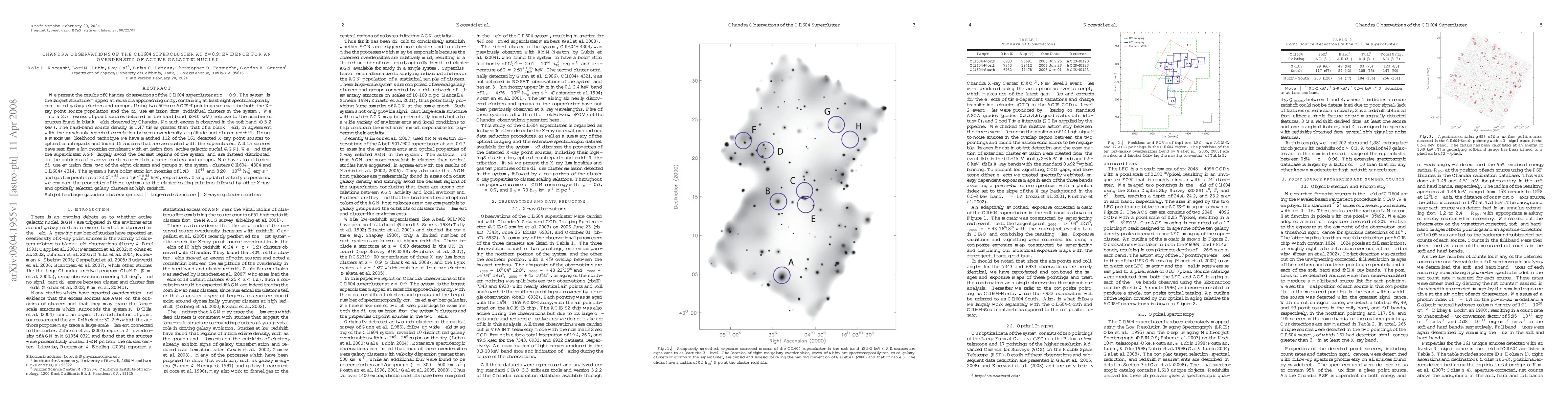This paper reports Chandra observations of the Cl1604 supercluster at z=0.9, revealing a 2.5σ excess of active galactic nuclei (AGN) in the hard X-ray band compared to blank fields. The supercluster's AGN are predominantly found in less dense regions, suggesting a correlation with cluster redshift.