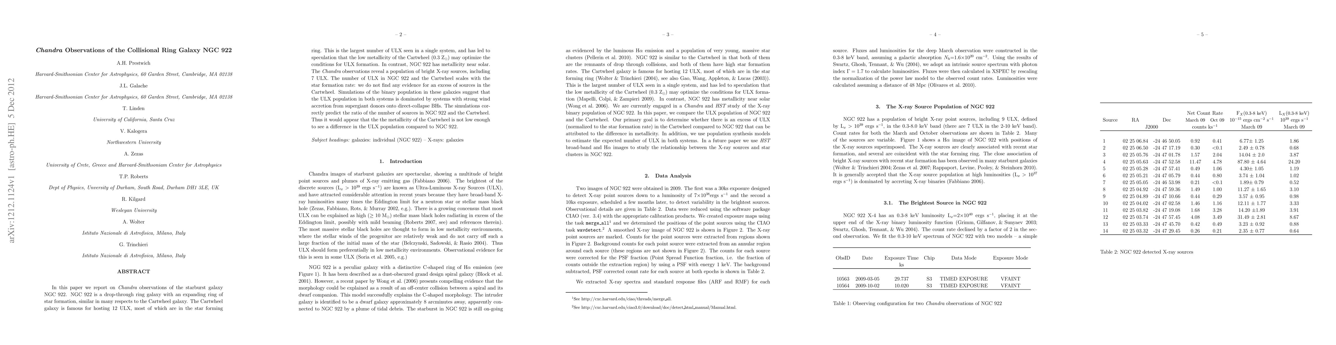 Chandra observations of NGC 922 reveal 7 ultraluminous X-ray sources (ULX), similar to the Cartwheel galaxy's ULX population, suggesting that star formation rate, not metallicity, primarily influences ULX formation. Simulations indicate both galaxies' ULX populations are dominated by binary systems with strong wind accretion.