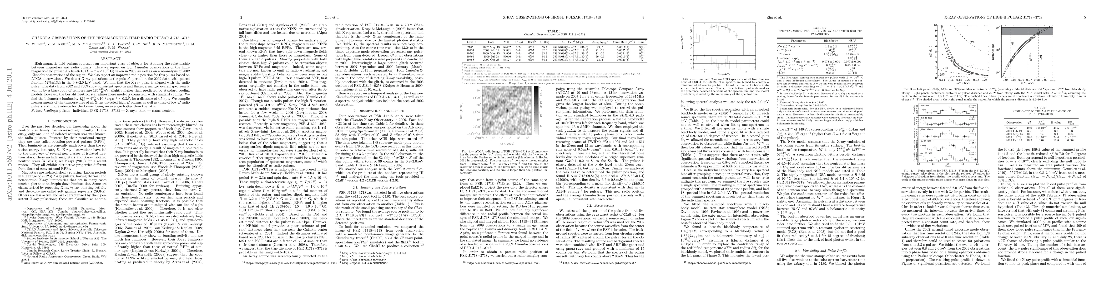 This paper reports Chandra observations of the high-magnetic-field pulsar J1718-3718, detecting X-ray pulsations aligned with its radio pulse, and finding a blackbody temperature higher than standard cooling models predict. The study also finds high-B pulsars, on average, hotter than low-B pulsars.