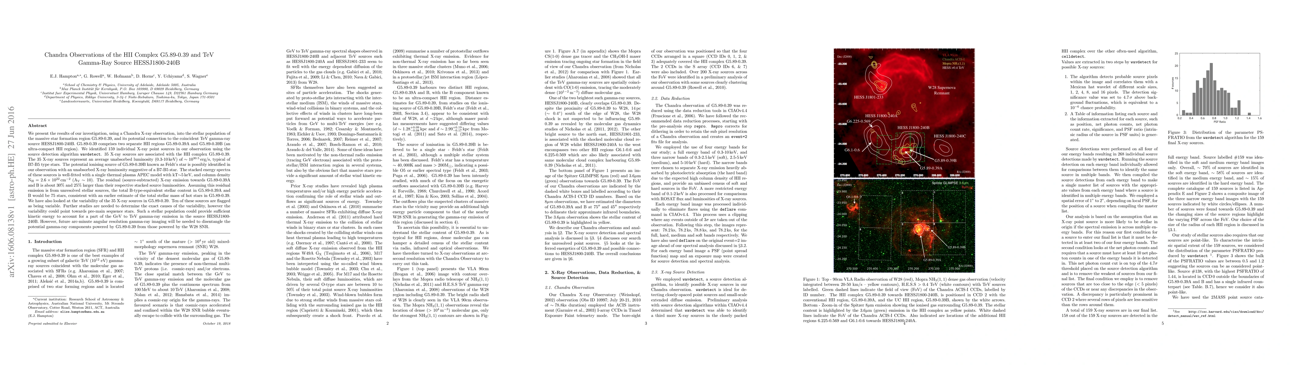 A Chandra X-ray observation of the massive star formation region G5.89-0.39 reveals 35 X-ray sources with average luminosities typical of B-type stars, potentially powering a TeV gamma-ray source HESSJ1800-240B.