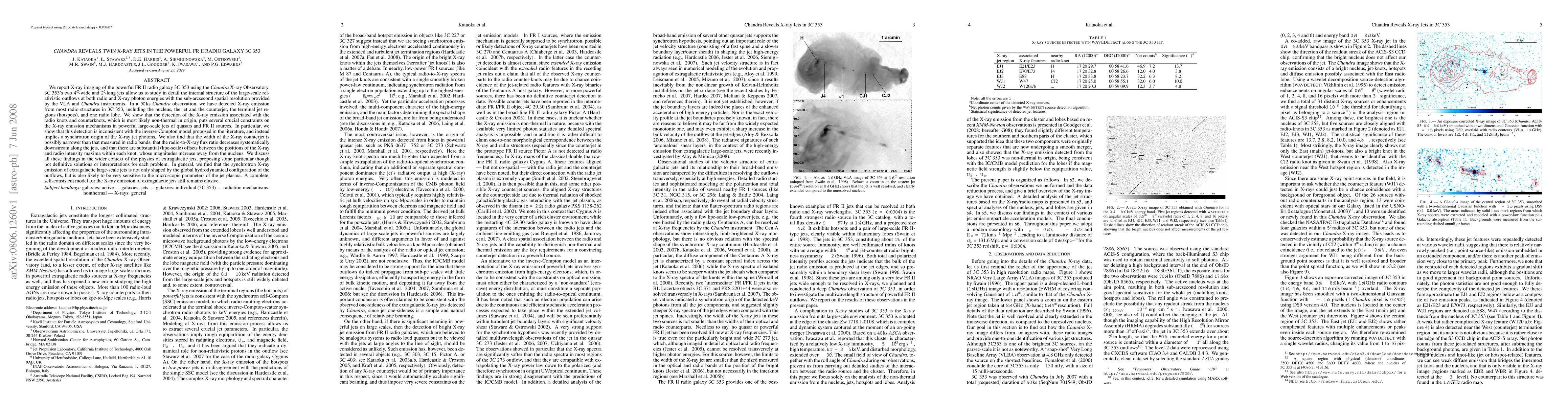 The Chandra X-ray Observatory detected detailed X-ray jets in the powerful FR-II radio galaxy 3C353, revealing synchrotron origins for the X-ray photons rather than inverse-Compton scattering. The study highlights discrepancies in radio-to-X-ray flux ratios and spatial alignments between X-ray and radio emissions, offering insights into the physics of extragalactic jets.
