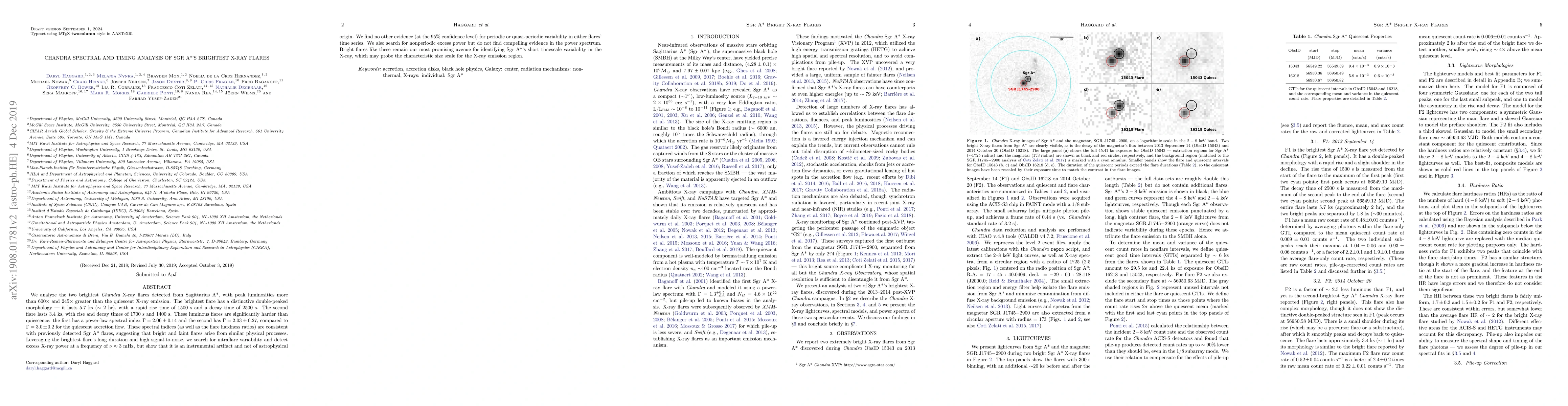 Researchers analyzed two bright X-ray flares from Sagittarius A* using Chandra data, finding that they were significantly harder than the quiescent emission and had distinct spectral properties, but no conclusive evidence of periodic or non-periodic variability.