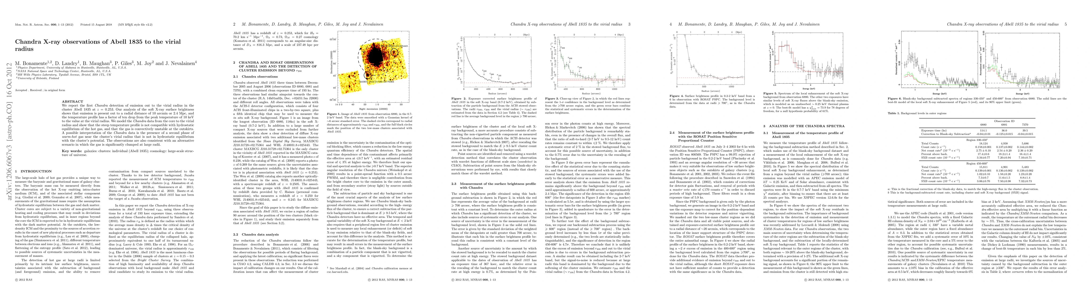 This paper reports Chandra X-ray observations revealing emission extending to the virial radius of the cluster Abell 1835, with a significant temperature drop from the core to the outskirts. The findings suggest the presence of a second phase of warm-hot gas or significant gas clumping, challenging hydrostatic equilibrium.