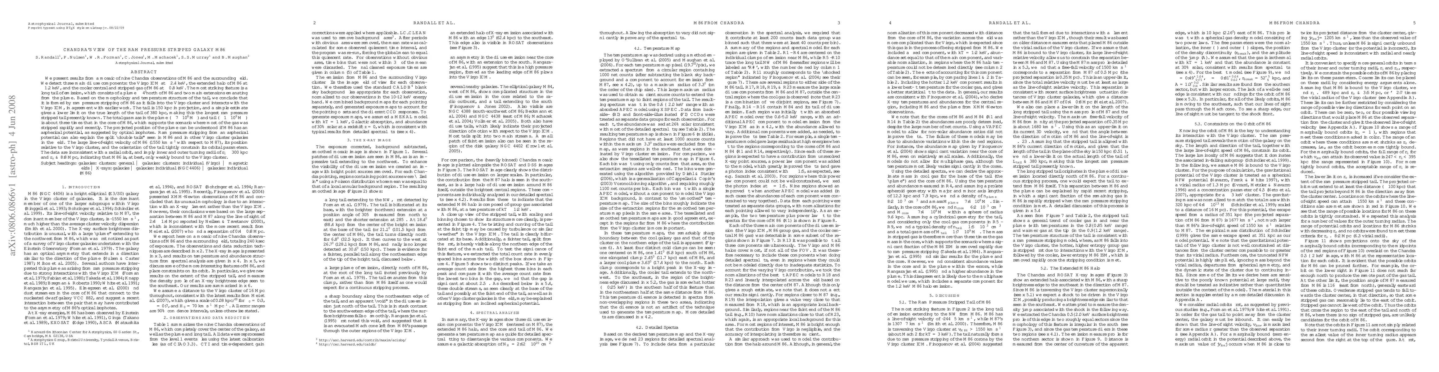 We present results from a mosaic of nine Chandra observations of M86 and the surrounding field. We detect three main diffuse components: the Virgo ICM at ~2.4 keV, the extended halo of M86 at ~1.2 keV, and the cooler central and stripped gas of M86 at ~0.8 keV. The most striking feature is a long tail of emission, which consists of a plume ~ 4' north of M86 and two main extensions emanating from the plume. Based on the morphology and temperature structure of the tail, we conclude that it is formed by ram pressure stripping of M86 as it falls into the Virgo cluster and interacts with the Virgo ICM, in agreement with earlier work. The tail is 150 kpc in projection, and a simple estimate gives a lower limit on the true length of the tail of 380 kpc, making this the longest ram pressure stripped tail presently known. The total gas mass in the plume (7x10^8 M_sun) and tail (1x10^9 M_sun) is about three times that in the core of M86, which supports the scenario where most of the gas was stripped rapidly and recently. The projected position of the plume can be understood if M86 has an aspherical potential, as suggested by optical isophotes. Ram pressure stripping from an aspherical potential can also explain the split "double tails" seen in M86 and in other Virgo cluster galaxies in the field. The large line-of-sight velocity of M86 (1550 km/s with respect to M87), its position relative to the Virgo cluster, and the orientation of the tail tightly constrain its orbital parameters. The data are inconsistent with a radial orbit, and imply inner and outer turning radii of r_i ~ 300 kpc and r_o > 8.8 Mpc, indicating that M86 is, at best, only weakly bound to the Virgo cluster.