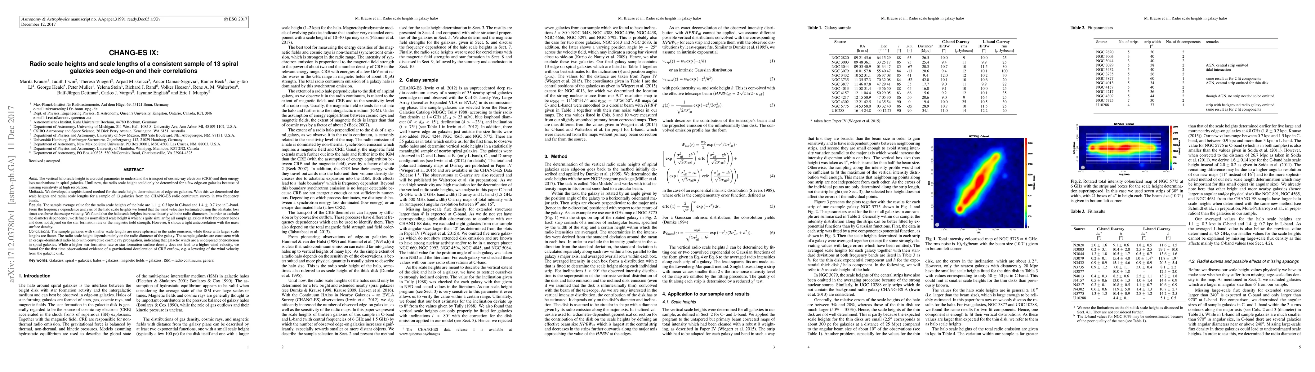 The vertical halo scale height is a crucial parameter to understand the transport of cosmic-ray electrons (CRE) and their energy loss mechanisms in spiral galaxies. Until now, the radio scale height could only be determined for a few edge-on galaxies because of missing sensitivity at high resolution. We developed a sophisticated method for the scale height determination of edge-on galaxies. With this we determined the scale heights and radial scale lengths for a sample of 13 galaxies from the CHANG-ES radio continuum survey in two frequency bands. The sample average value for the radio scale heights of the halo are 1.1 +/- 0.3kpc in C-band and 1.4 +/- 0.7kpc in L-band. From the frequency dependence analysis of the halo scale heights we found that the wind velocities (estimated using the adiabatic loss time) are above the escape velocity. We found that the halo scale heights increase linearly with the radio diameters. In order to exclude the diameter dependence, we defined a normalized scale height which is quite similar for all sample galaxies at both frequency bands and does not depend on the star formation rate or the magnetic field strength. However, the normalized scale height shows a tight anticorrelation with the mass surface density. The sample galaxies with smaller scale lengths are more spherical in the radio emission, while those with larger scale lengths are flatter. The radio scale height depends mainly on the radio diameter of the galaxy. The sample galaxies are consistent with an escape-dominated radio halo with convective cosmic ray propagation, indicating that galactic winds are a widespread phenomenon in spiral galaxies. While a higher star formation rate or star formation surface density does not lead to a higher wind velocity, we deceleration of CRE outflow, e.g. a lowering of the wind velocity from the galactic disk.