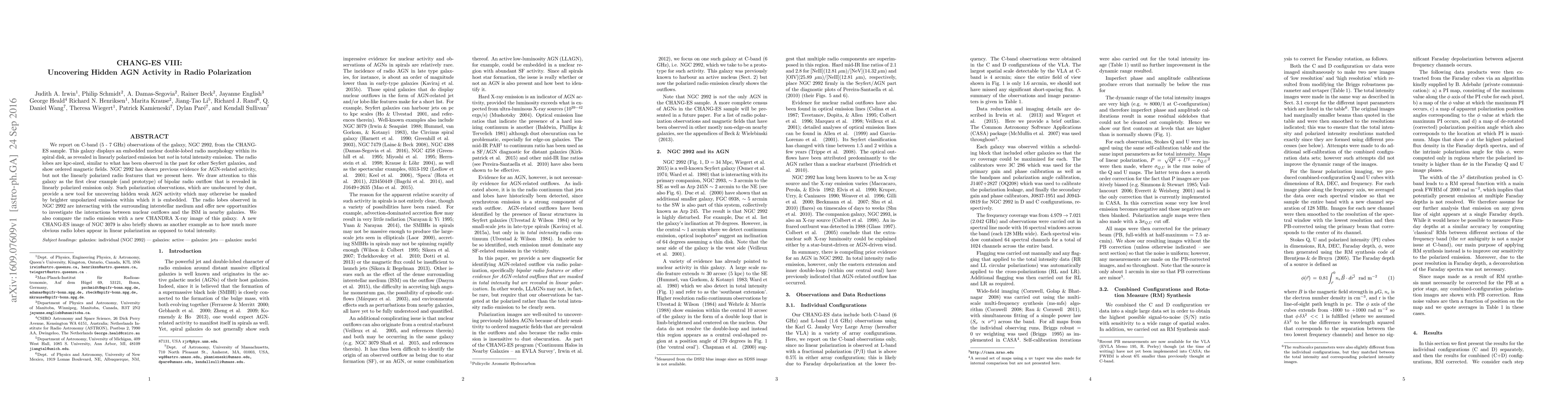 We report on C-band (5 - 7 GHz) observations of the galaxy, NGC~2992, from the CHANG-ES sample. This galaxy displays an embedded nuclear double-lobed radio morphology within its spiral disk, as revealed in linearly polarized emission but {\it not} in total intensity emission. The radio lobes are kpc-sized, similar to what has been observed in the past for other Seyfert galaxies, and show ordered magnetic fields. NGC~2992 has shown previous evidence for AGN-related activity, but not the linearly polarized radio features that we present here. We draw attention to this galaxy as the first clear example (and prototype) of bipolar radio outflow that is revealed in linearly polarized emission only. Such polarization observations, which are unobscured by dust, provide a new tool for uncovering hidden weak AGN activity which may otherwise be masked by brighter unpolarized emission within which it is embedded. The radio lobes observed in NGC~2992 are interacting with the surrounding interstellar medium and offer new opportunities to investigate the interactions between nuclear outflows and the ISM in nearby galaxies. We also compare the radio emission with a new CHANDRA X-ray image of this galaxy. A new CHANG-ES image of NGC~3079 is also briefly shown as another example as to how much more obvious radio lobes appear in linear polarization as opposed to total intensity.