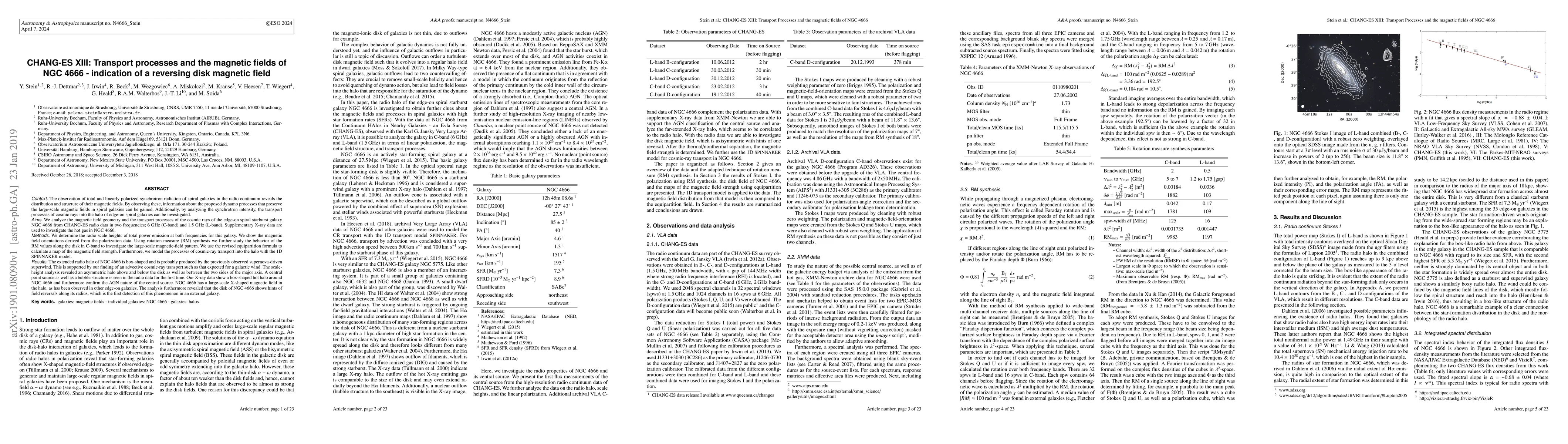 Researchers analyzed the magnetic fields and cosmic ray transport in NGC 4666, a starburst galaxy, finding evidence of a reversing disk magnetic field and an advective cosmic-ray transport, which is likely driven by a galactic wind.
