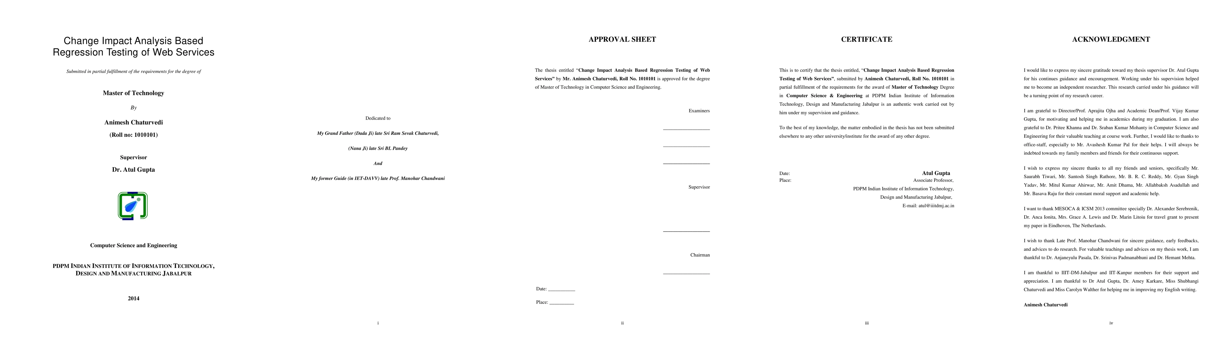 Reducing the effort required to make changes in web services is one of the primary goals in web service projects maintenance and evolution. Normally, functional and non-functional testing of a web service is performed by testing the operations specified in its WSDL. The regression testing is performed by identifying the changes made thereafter to the web service code and the WSDL. In this thesis, we present a tool-supported approach to perform efficient regression testing of web services. By representing a web service as a directed graph of WSDL elements, we identify and gathers the changed portions of the graph and use this information to reduce regression testing efforts. Specifically, we identify, categorize, and capture the web service testing needs in two different ways, namely, Operationalized Regression Testing of Web Service (ORTWS) and Parameterized Regression Testing of Web Service (PRTWS). Both of the approach can be combined to reduce the regression testing efforts in the web service project. The proposed approach is prototyped as a tool, named as Automatic Web Service Change Management (AWSCM), which helps in selecting the relevant test cases to construct reduced test suite from the old test suite. We present few case studies on different web service projects to demonstrate the applicability of the proposed tool. The reduction in the effort for regression testing of web service is also estimated.