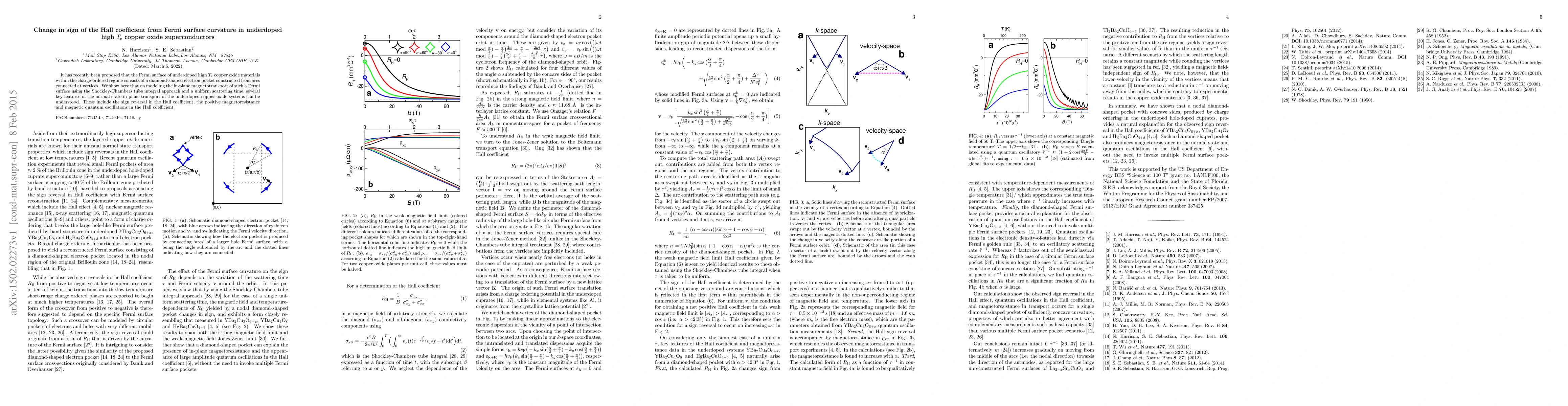 This study models the in-plane magnetotransport of underdoped high Tc copper oxide superconductors, revealing a diamond-shaped electron pocket Fermi surface. The research explains the sign reversal in the Hall coefficient, positive magnetoresistance, and magnetic quantum oscillations through the Shockley-Chambers tube integral approach.