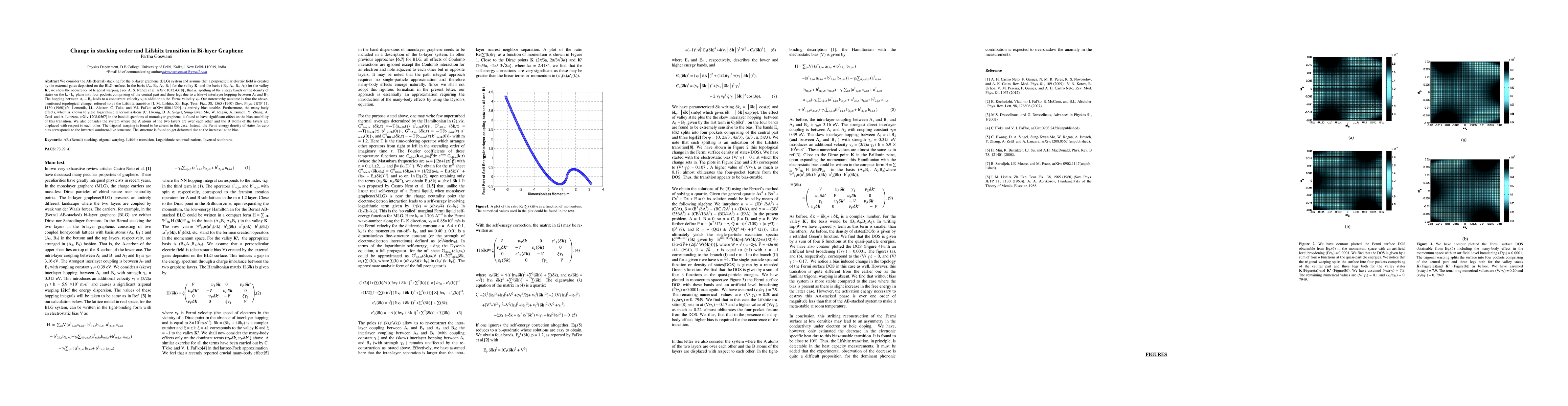 We consider the AB-(Bernal) stacking for the bi-layer graphene (BLG) system and assume that a perpendicular electric field is created by the external gates deposited on the BLG surface. In the basis (A1, B2, A2, B1) for the valley K and the basis (B2, A1, B1, A2) for the valley K', we show the occurrence of trigonal warping [ see A. S. N\'u\~nez et al.,arXiv:1012.4318], that is, splitting of the energy bands or the density of states on the kx - ky plane into four pockets comprising of the central part and three legs due to a (skew) interlayer hopping between A1 and B2. The hopping between A1 - B2 leads to a concurrent velocity v3in addition to the Fermi velocity vF. Our noteworthy outcome is that the above-mentioned topological change, referred to as the Lifshitz transition [I. M. Lishitz, Zh. Exp. Teor. Fiz., 38, 1565 (1960) (Sov. Phys. JETP 11, 1130 (1960));Y. Lemonik, I.L. Aleiner, C. Toke, and V.I. Fal'ko; arXiv:1006.1399], is entirely bias-tunable. Furthermore, the many-body effects, which is known to yield logarithmic renormalizations [C. Hwang, D. A. Siegel, Sung-Kwan Mo, W. Regan, A. Ismach, Y. Zhang, A. Zettl and A. Lanzara, arXiv:1208.0567] in the band dispersions of monolayer graphene, is found to have significant effect on the bias-tunability of this transition. We also consider the system where the A atoms of the two layers are over each other and the B atoms of the layers are displaced with respect to each other. The trigonal warping is found to be absent in this case. Instead, the Fermi energy density of states for zero bias corresponds to the inverted sombrero-like structure. The structure is found to get deformed due to the increase in the bias.