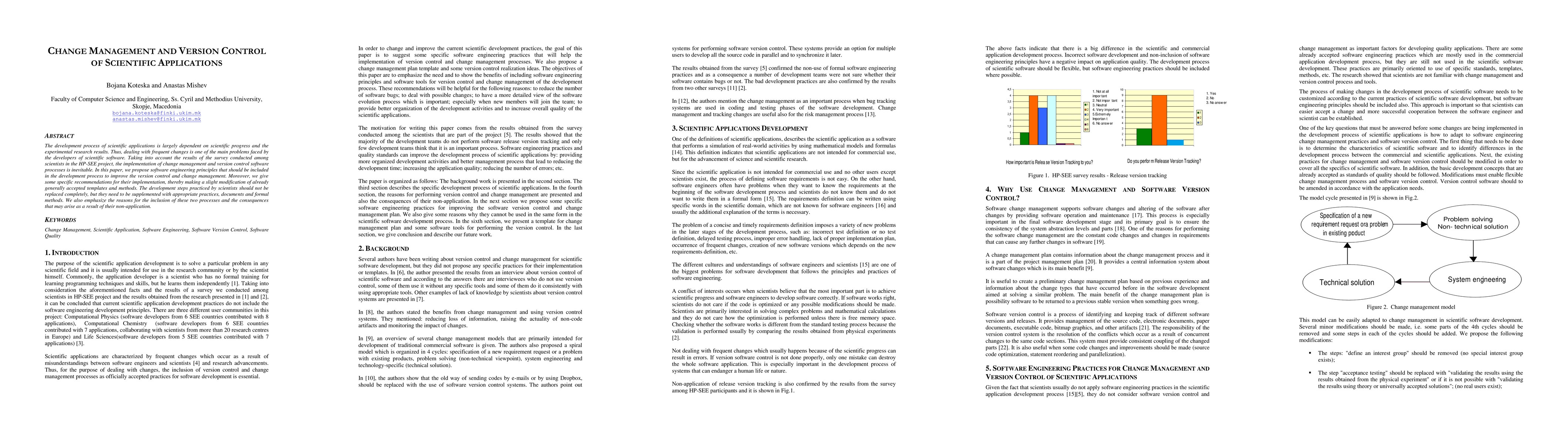 Researchers propose software engineering principles to improve version control and change management in scientific applications, aiming to address frequent changes and experimental research results.