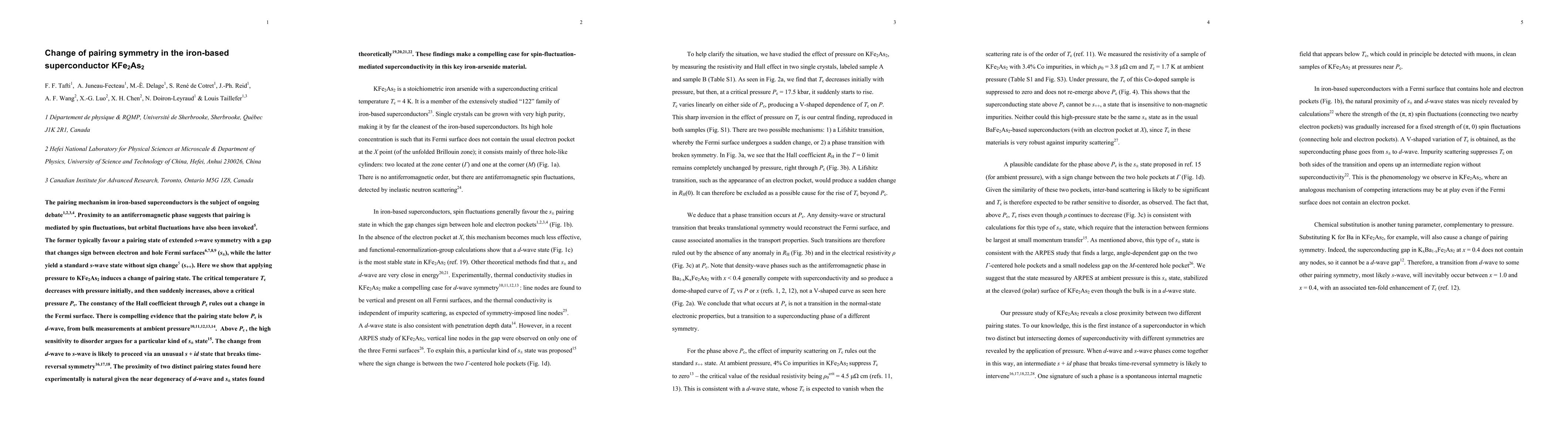 This study reveals that applying pressure to the iron-based superconductor KFe2As2 induces a change in its pairing symmetry from d-wave to an s+- state, suggesting spin-fluctuation-mediated superconductivity. The transition likely proceeds through an unconventional s + id state, highlighting the material's complex superconducting properties.