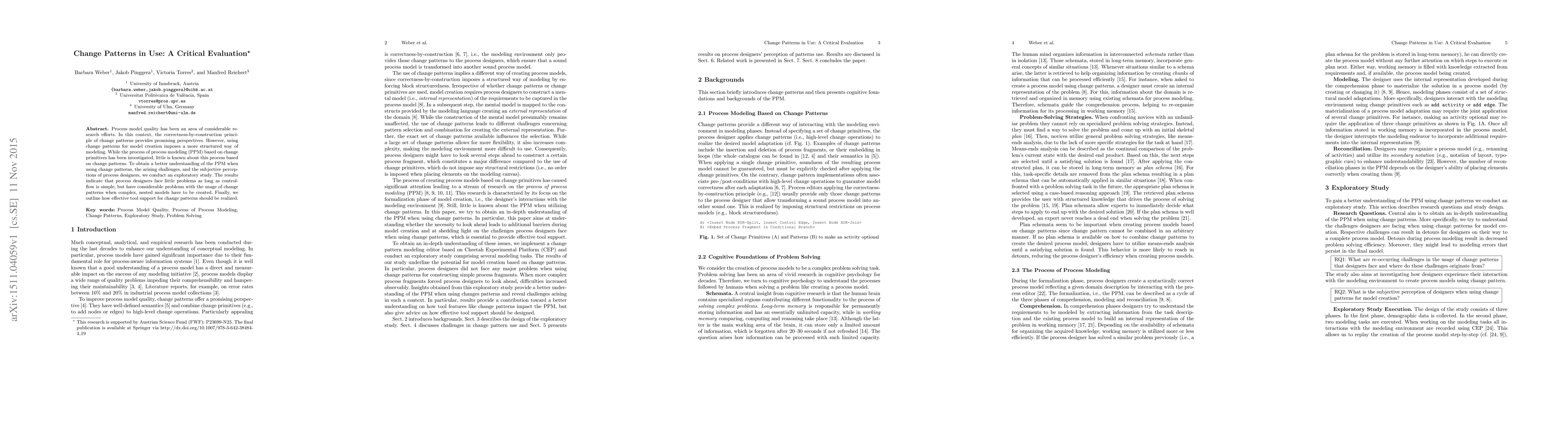 Researchers explored the challenges of using change patterns in process model creation, finding that simple control-flow models pose little issue but complex, nested models create problems. Effective tool support for change patterns is crucial to overcome these issues.